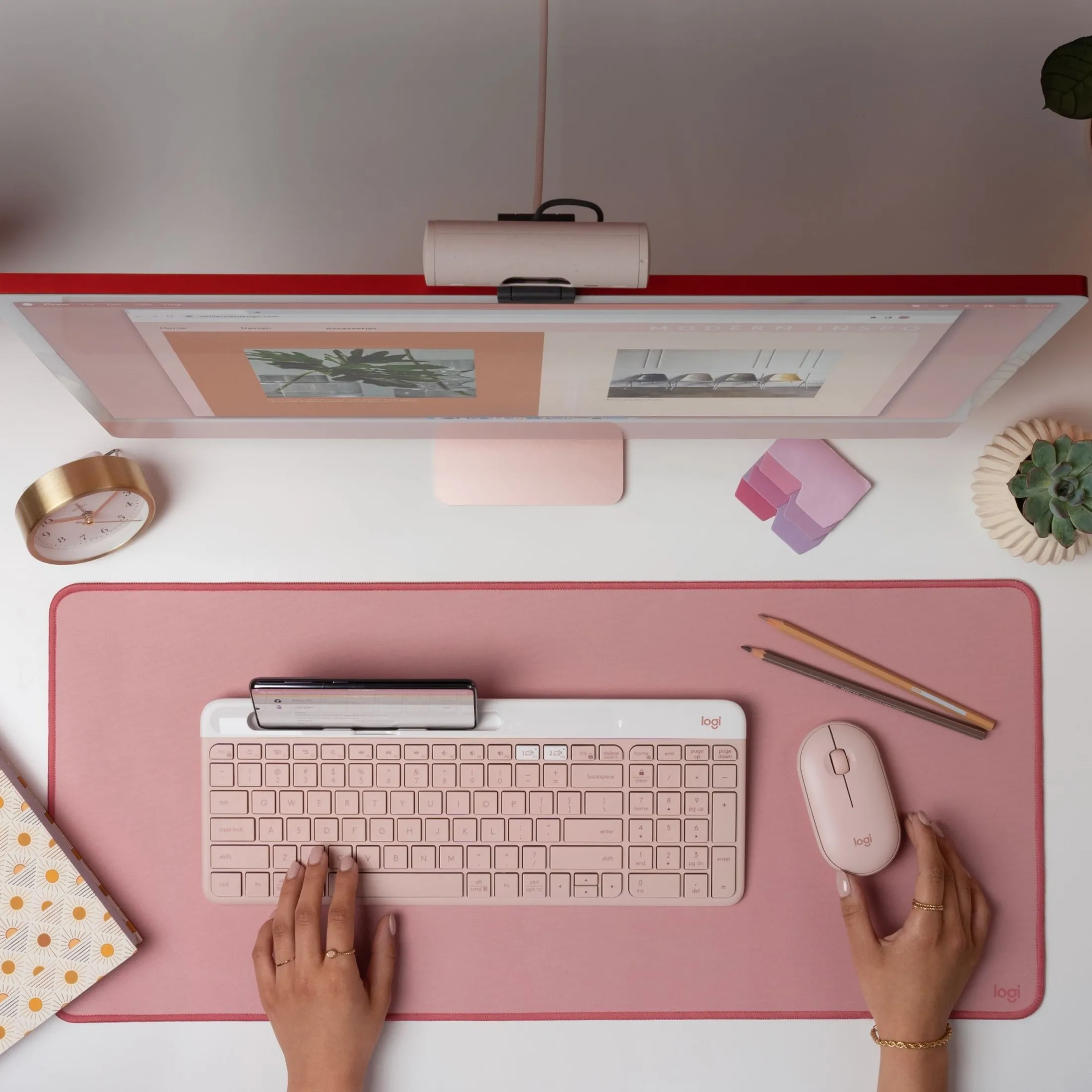 Enhance your workspace with the Logitech K585 Slim Multi-Device Keyboard in an attractive rose color. Designed for versatility, this sleek keyboard allows you to seamlessly connect with multiple devices and switch between them effortlessly.