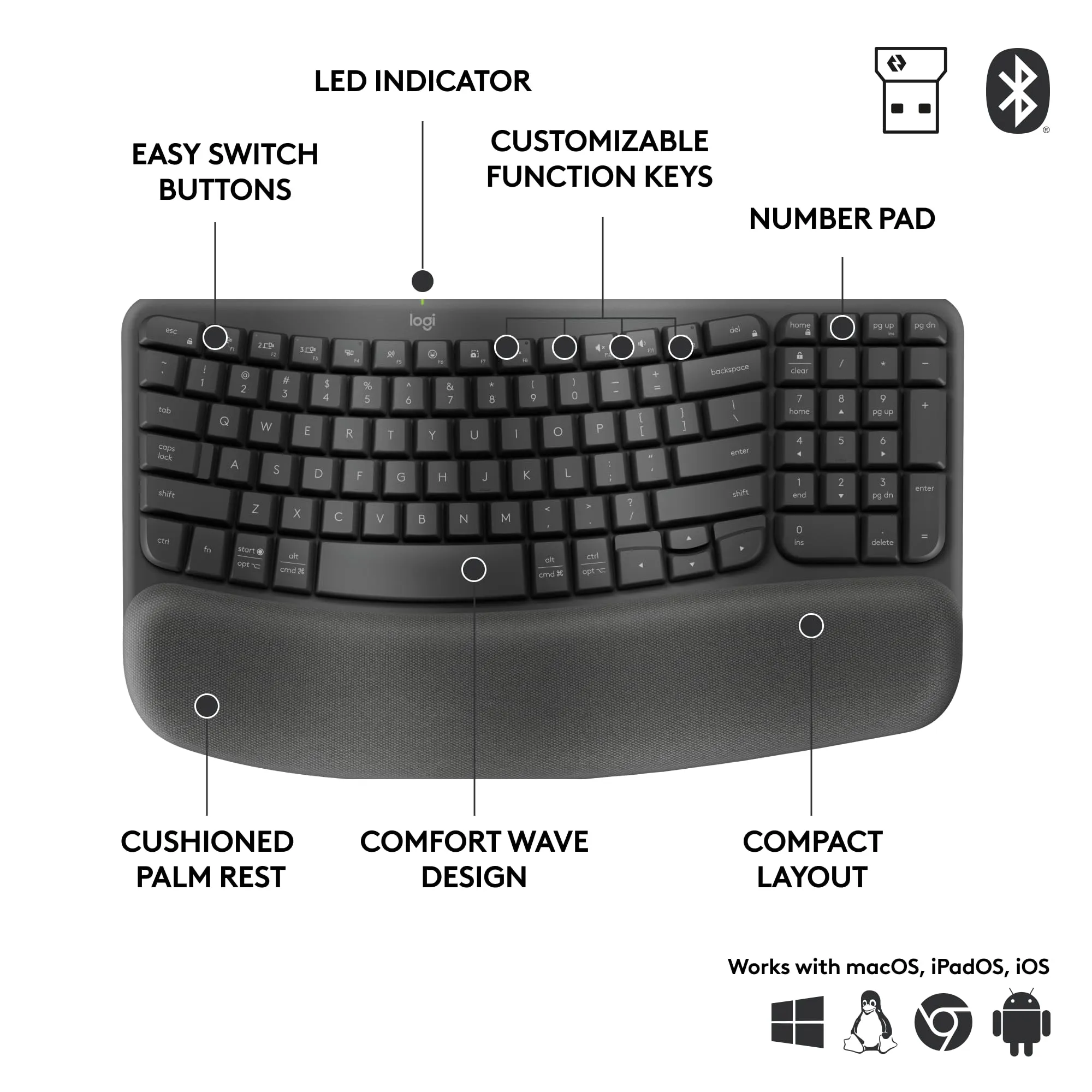 The Logitech Wave Keys for Business is designed to enhance your productivity with its ergonomic layout and advanced BOLT receiver technology. Ideal for office use, this keyboard combines comfort and functionality to meet the demands of any professional environment.