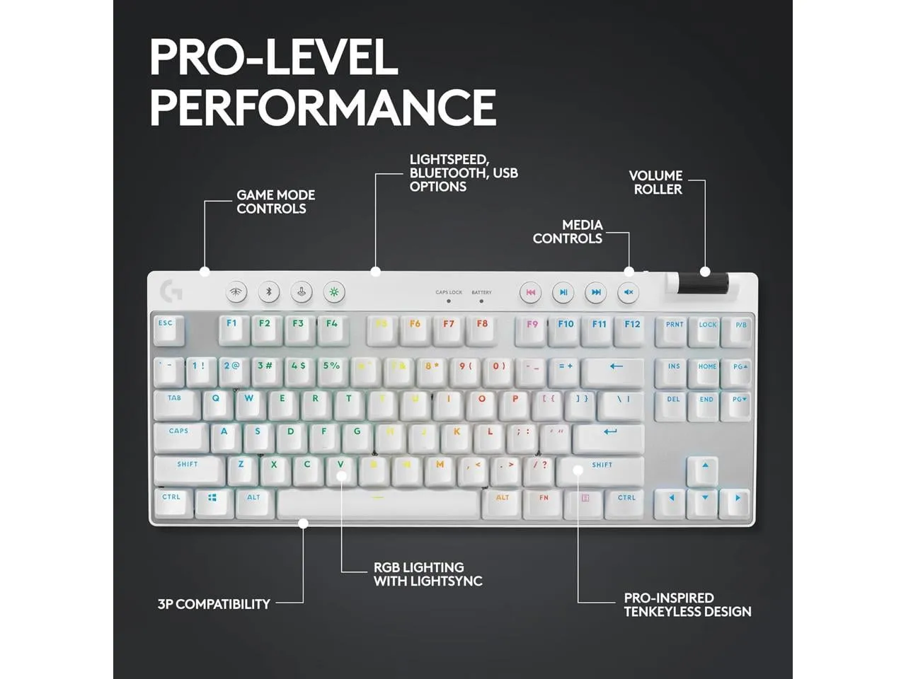 The Logitech G PRO X TKL LIGHTSPEED Wireless Gaming Keyboard in White is designed for competitive gamers who demand performance and style. With its compact tenkeyless layout, this keyboard provides a clean and efficient setup while maintaining essential features.
