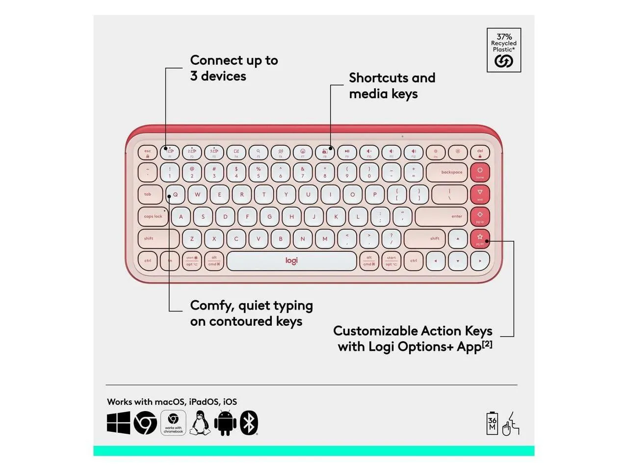 The POP ICON KEYS KEYBOARD in a stylish Rose Off-White color combines functionality with a modern aesthetic. Perfect for both gaming and professional use, this keyboard is designed to provide an exceptional typing experience.