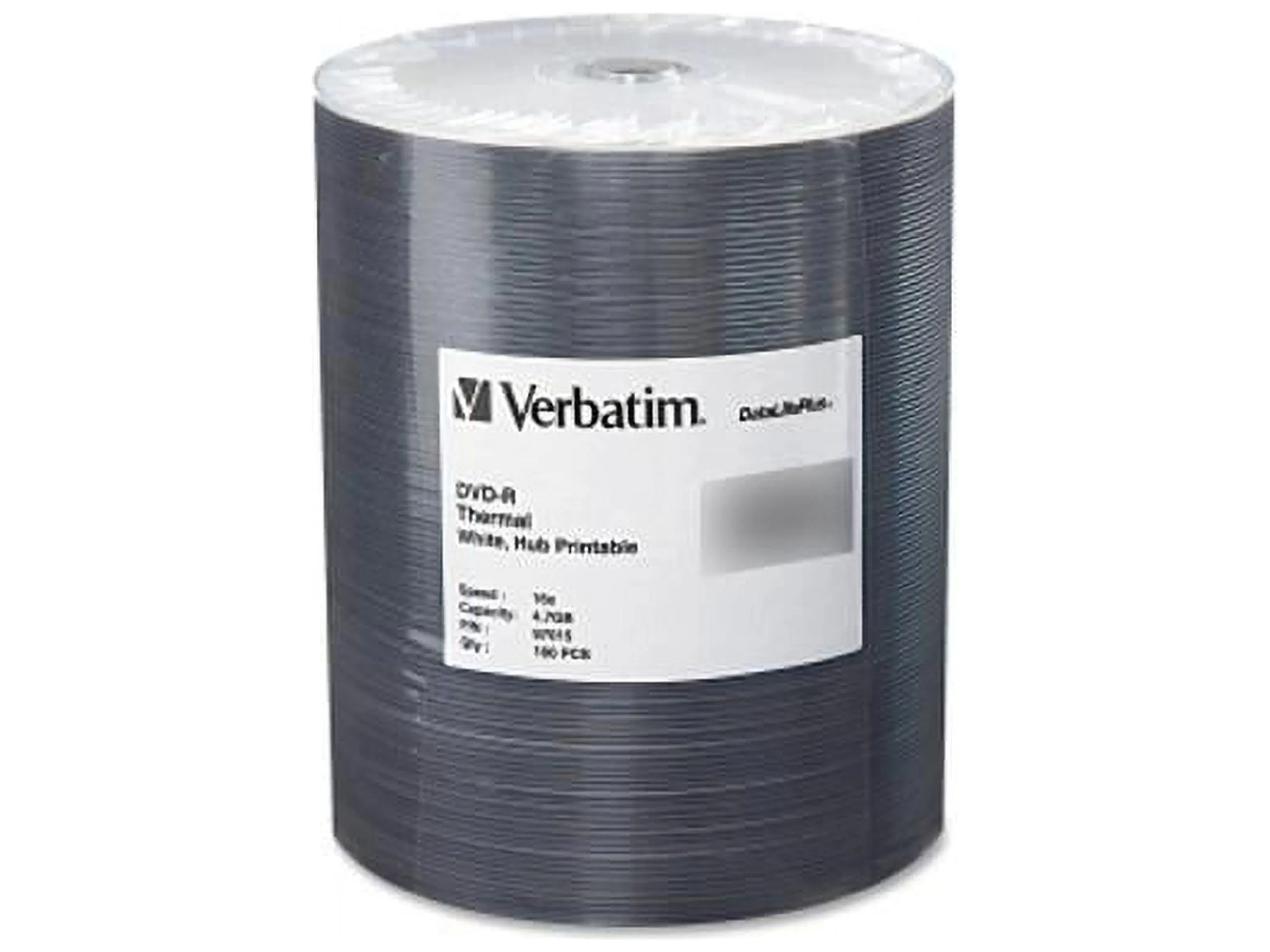 Verbatim Thermal Printable 16X speed DVD-Recordable discs are available in a white surface, which supports full-surface edge-to-edge printing. Verbatim white thermal DVD media are fully compatible with multi-color and mono-color thermal disc printers from Rimage, Teac and other leading thermal printer manufacturers. These discs do not have a “stack ring", enabling print coverage of the entire disc surface.