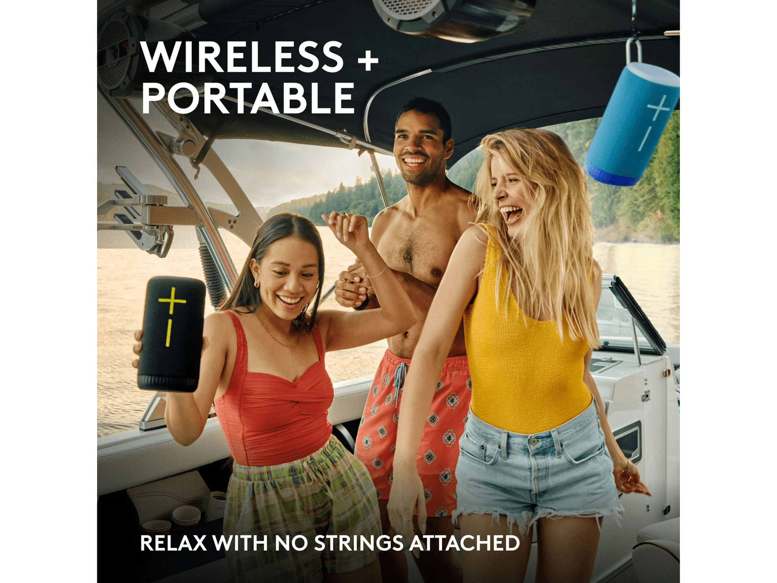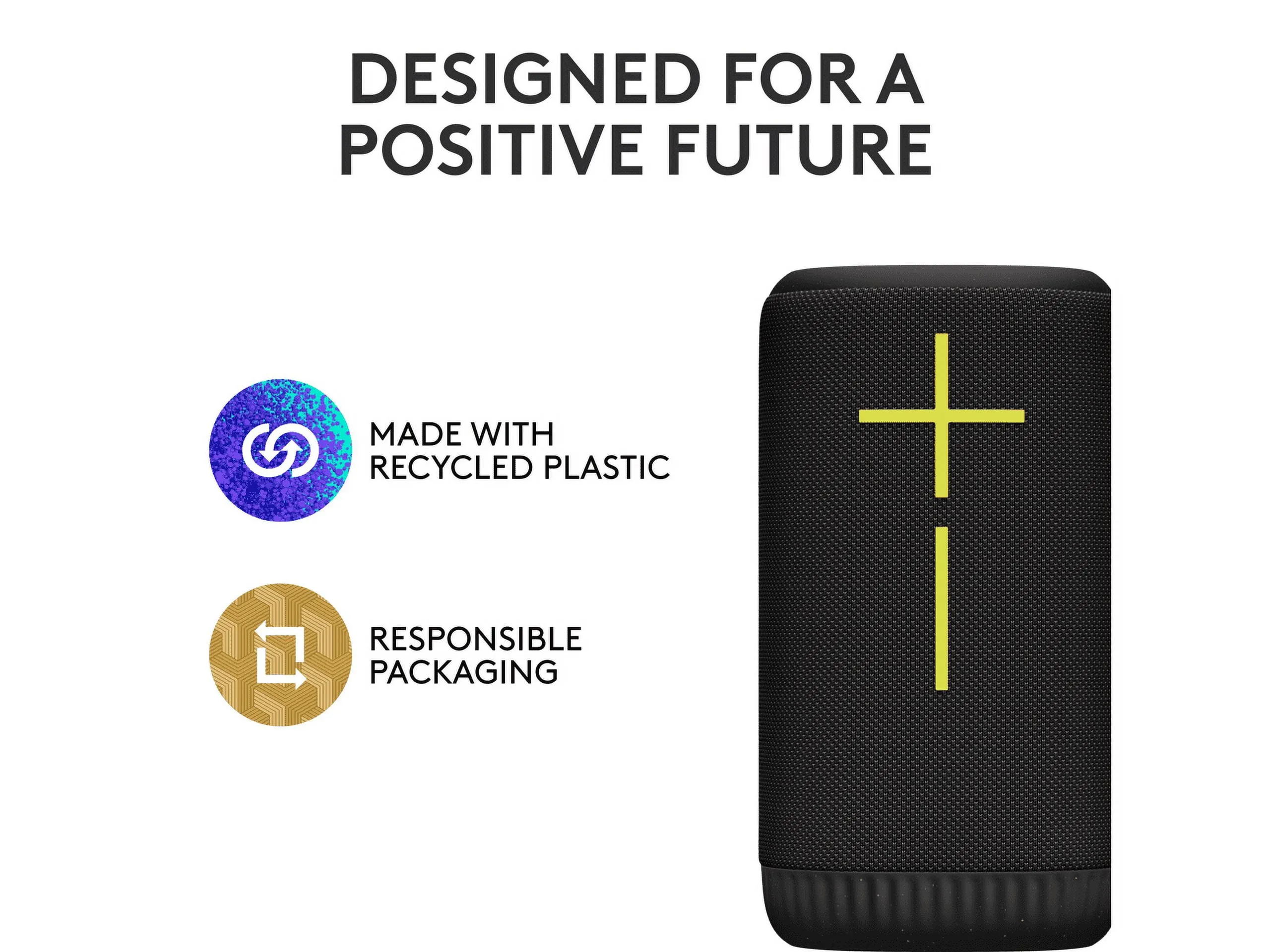 The Ultimate Ears EVERBOOM is a powerful wireless Bluetooth speaker that delivers immersive sound with deep bass. Its rugged design makes it perfect for outdoor adventures, providing up to 15 hours of playtime on a single charge. With a waterproof rating, this speaker is ready for any environment, whether you're at the beach or in a pool party.