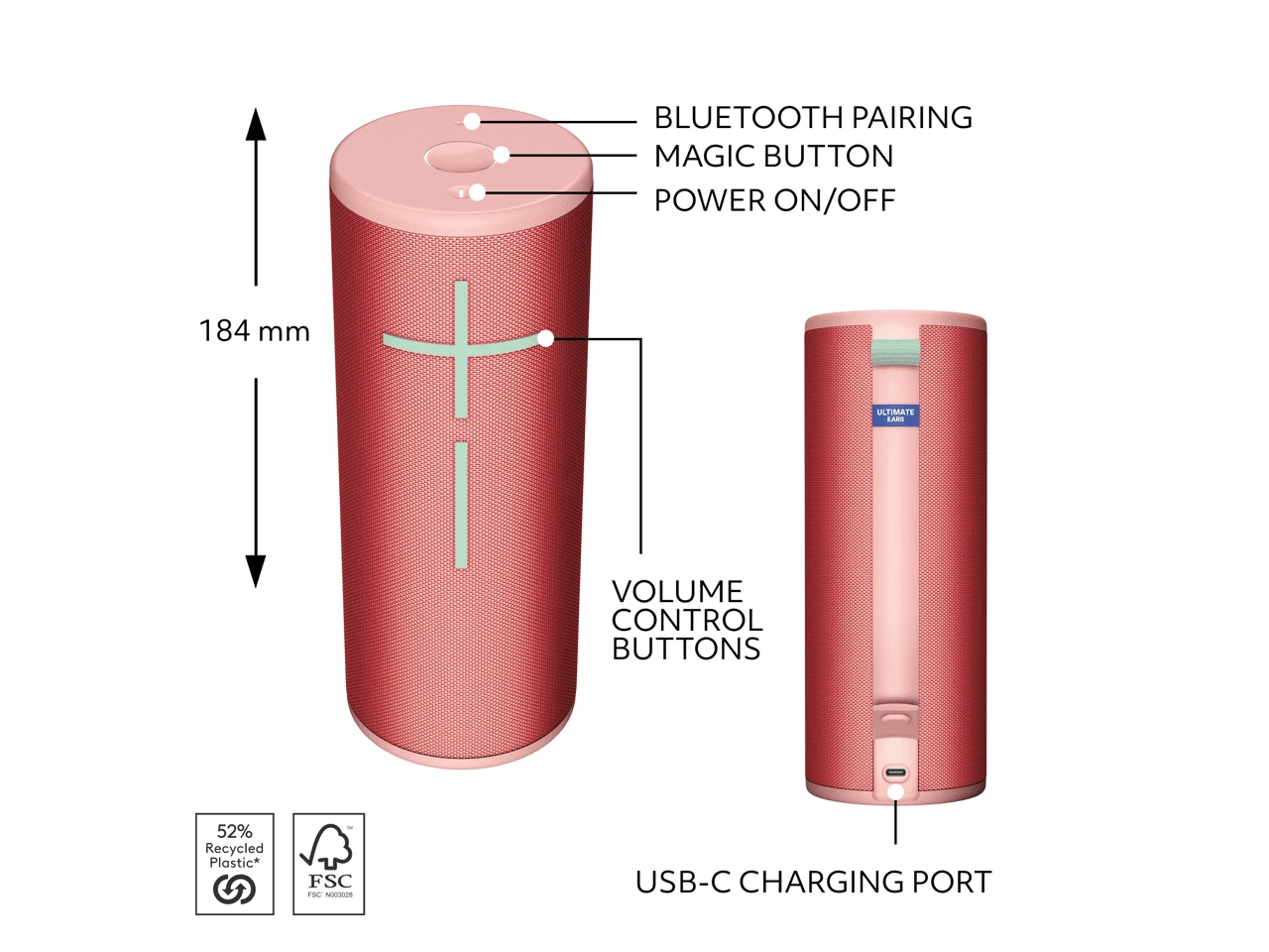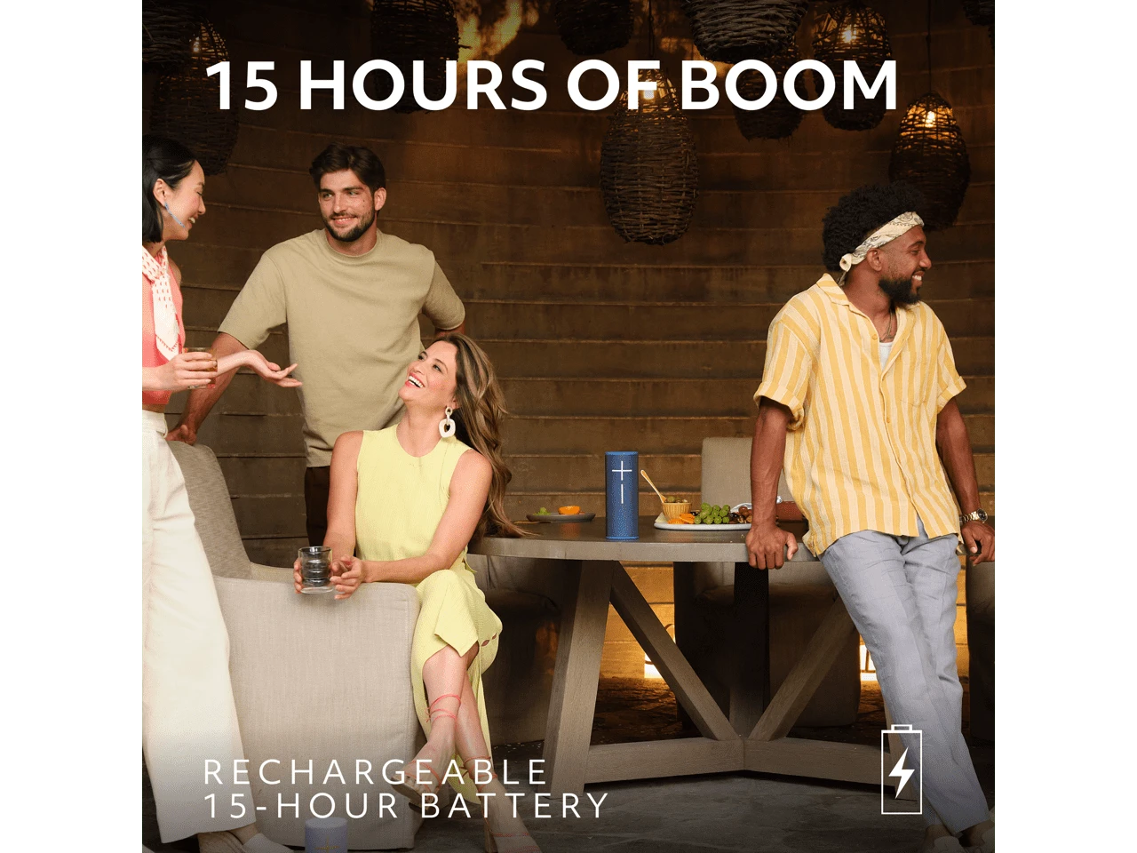 Experience a long playtime with up to 15 hours of battery life, and connect it to other UE speakers for an even more powerful sound. Ideal for outdoor adventures, parties, or just relaxing at home.