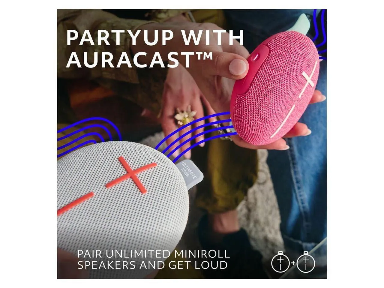 The Ultimate Ears Mini Roll is a compact, durable speaker designed for those who love big sound on the go. With its hookable strap, you can easily bring your music anywhere, whether you're at the beach, hiking, or just relaxing at home.