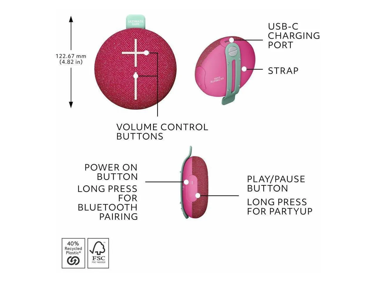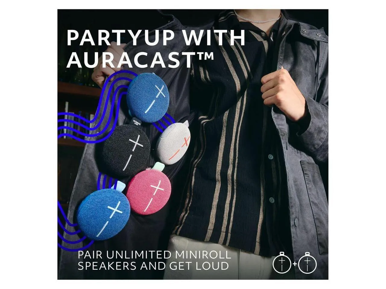 Introducing the Ultimate Ears Mini Roll, a compact yet powerful Bluetooth speaker designed to deliver high-quality sound wherever you go. With its lightweight and durable construction, this small speaker is perfect for outdoor adventures, parties, or simply relaxing at home. The built-in hookable strap allows you to easily attach it to your backpack or bike, ensuring that your music is always within reach.