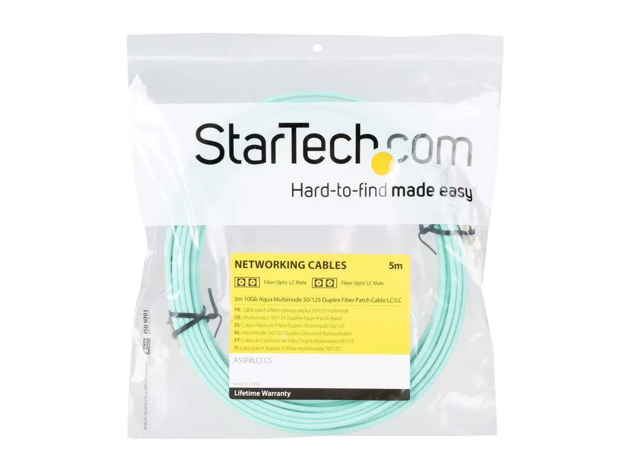 StarTech.com A50FBLCLC5 16.4 ft. Fiber Optic Cable - 10 Gb Aqua - Multimode Duplex 50/125 - LSZH - LC/LC