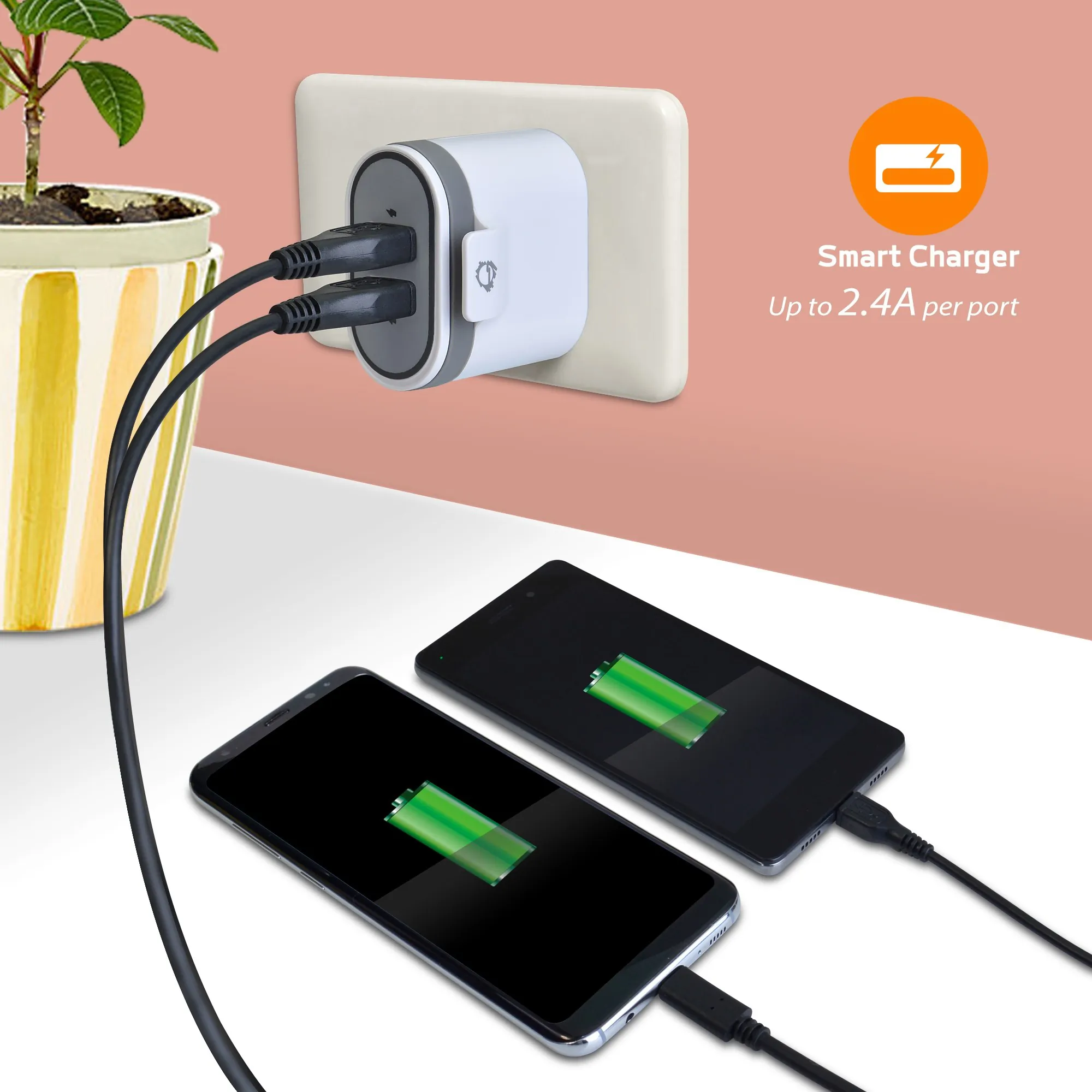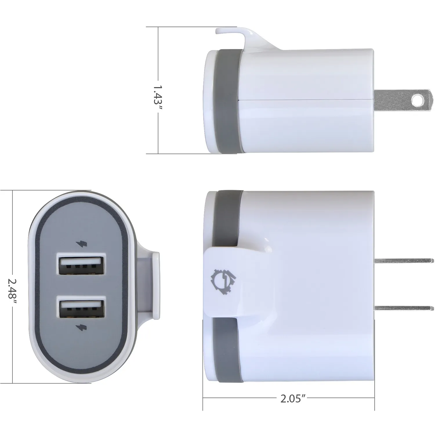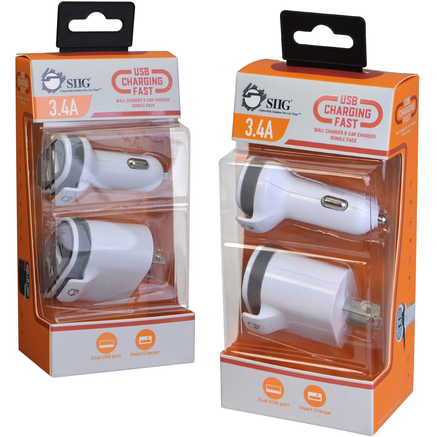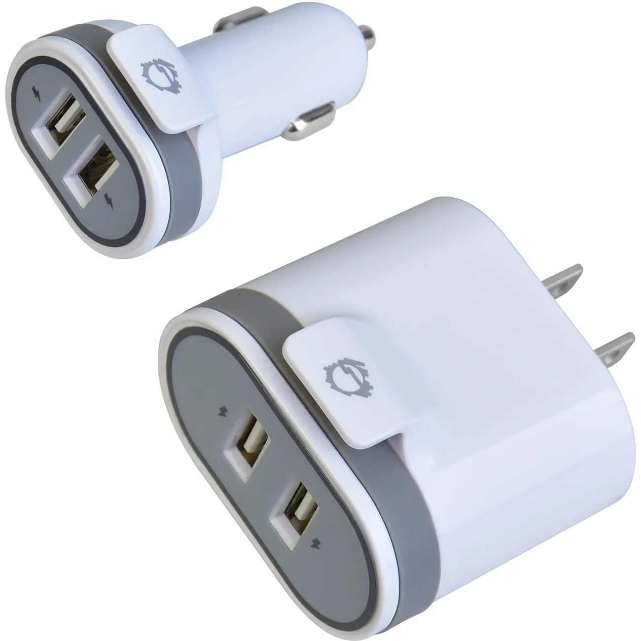 3.4A USB Wall Charger - White 3.4A USB Car Charger - White