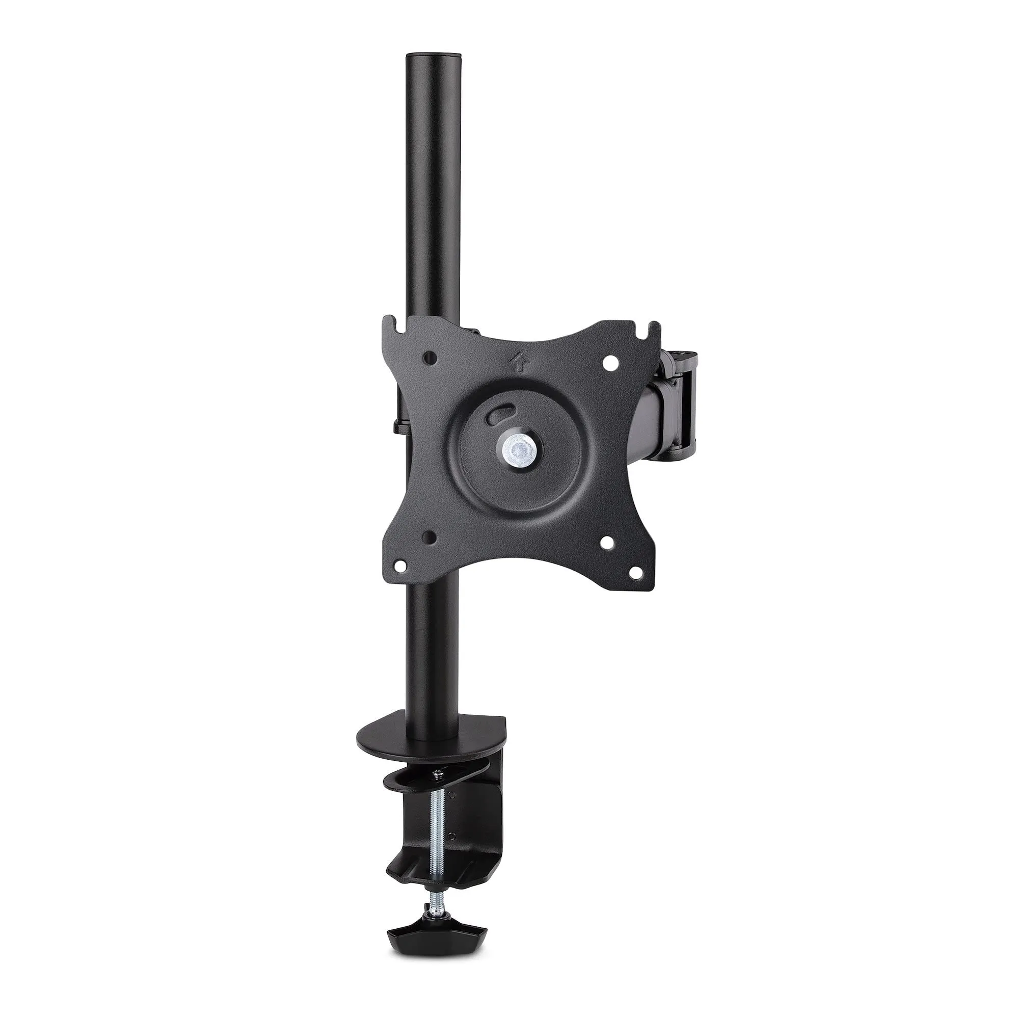 This articulating laptop mount is secured to a robust 17.7" (449mm) pole and offers a maximum reach of 16.85" (428mm) from the base, with an impressive +/- 180 degrees of articulation. The desk-clamp and grommet mount options make it suitable for desks ranging from 0.39" to 3.46" (10-88mm) thick, providing versatility for various setups.