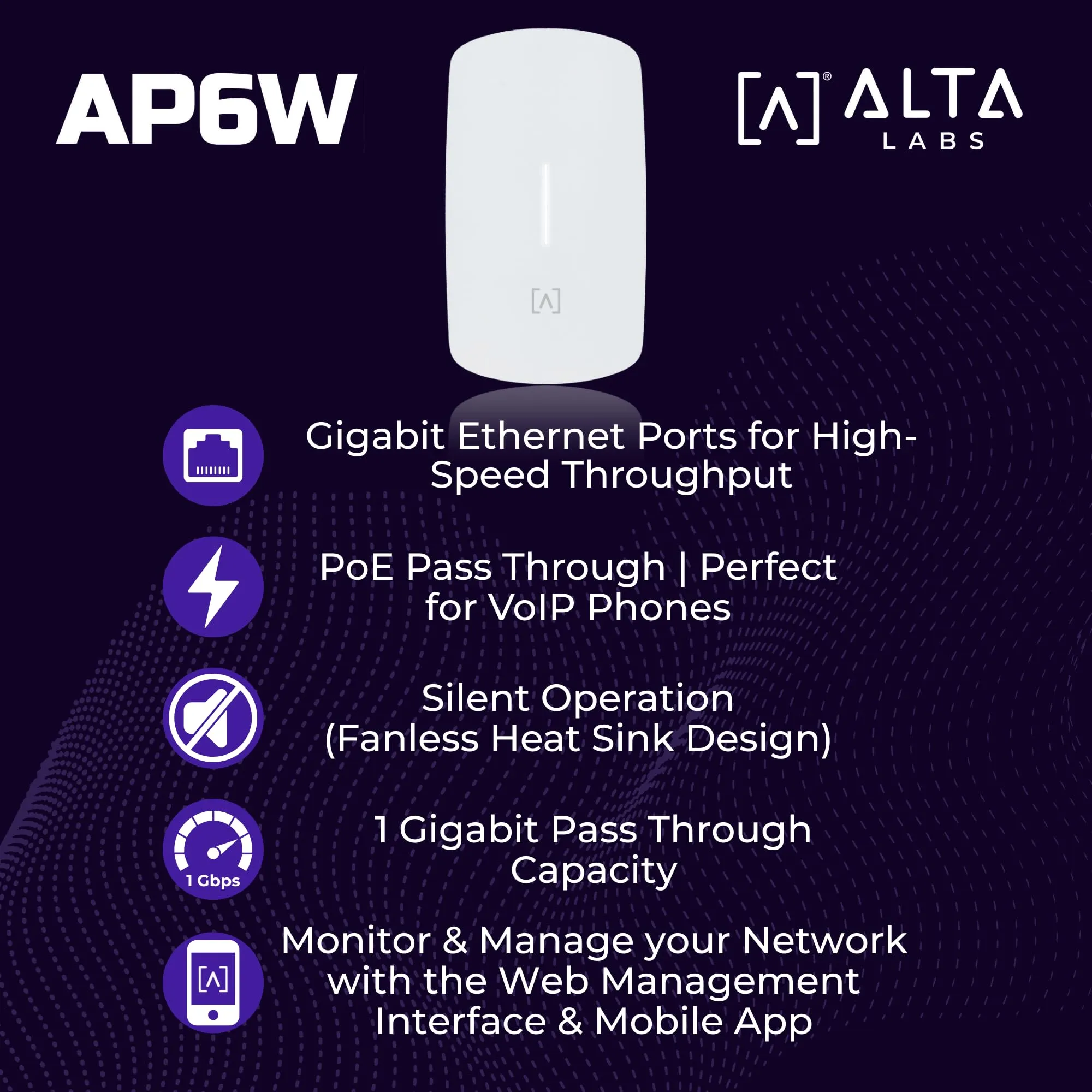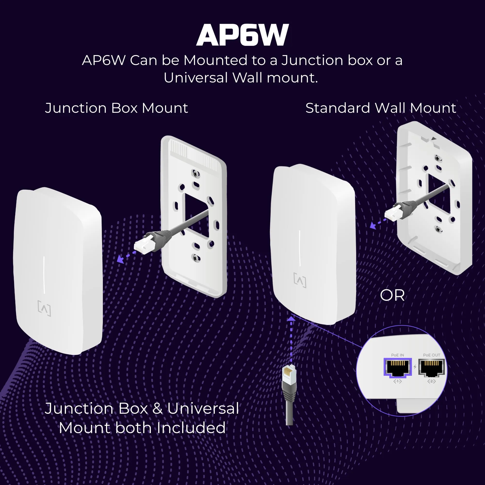 The Cloud Managed Wall Mount Access Point supports Wi-Fi 6 technology to deliver high-performance wireless connectivity for enterprise environments. Designed for seamless integration into any wall structure, it offers 2x2 MIMO for enhanced data throughput and reliability.
