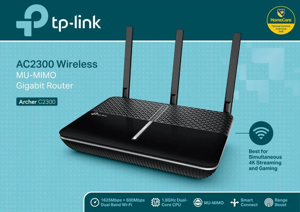 With NitroQAM Technology, Archer C2300 boosts the Wi-Fi Speed up to 1625Mbps on 5GHz and 600Mbps on 2.4GHz. It can perfectly handle your favorite activities like gaming online, watching 4K movies, or sharing large files. With XStream processor architecture, the Archer C2300 dedicates one processor to each of its Wi-Fi bands. These processors handle Wi-Fi traffic, freeing the router’s powerful 1.8 GHz dual-core 64-bit CPU to take care of everything else.