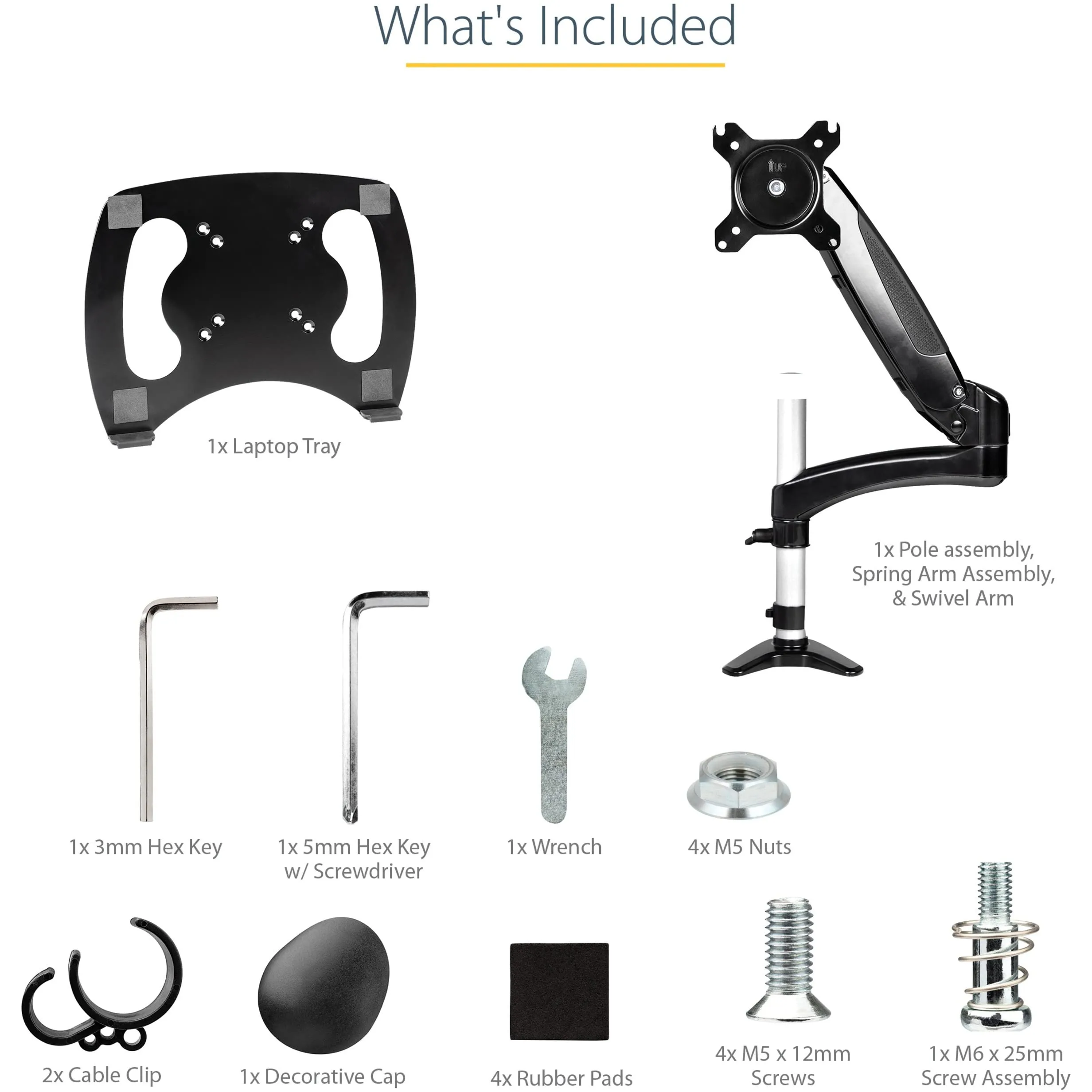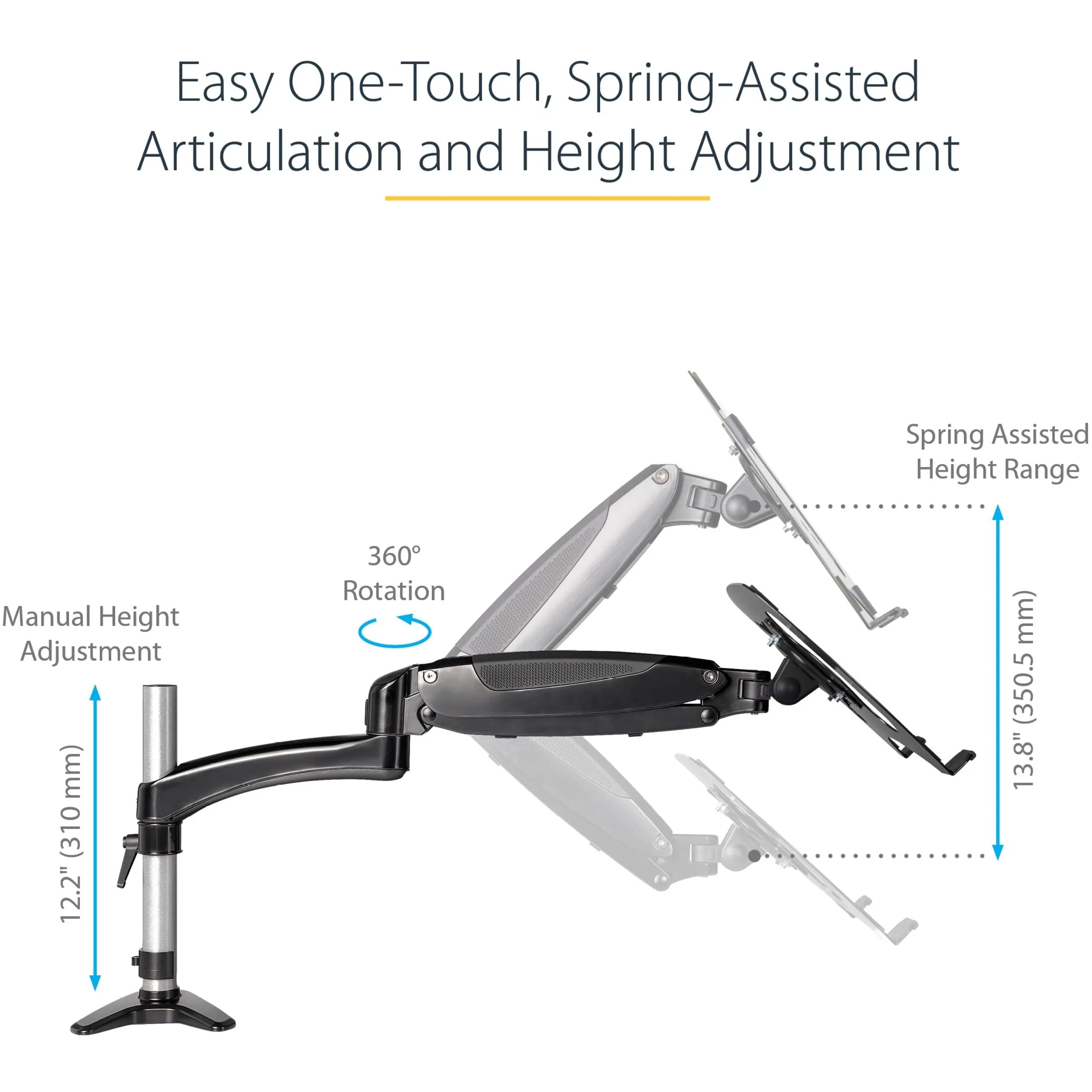Enhance your workspace with the StarTech Adjustable Desk Mount, designed to securely hold either a laptop or a single 34" monitor. This ergonomic stand allows for optimal positioning, helping to reduce strain on your neck and eyes during prolonged use.