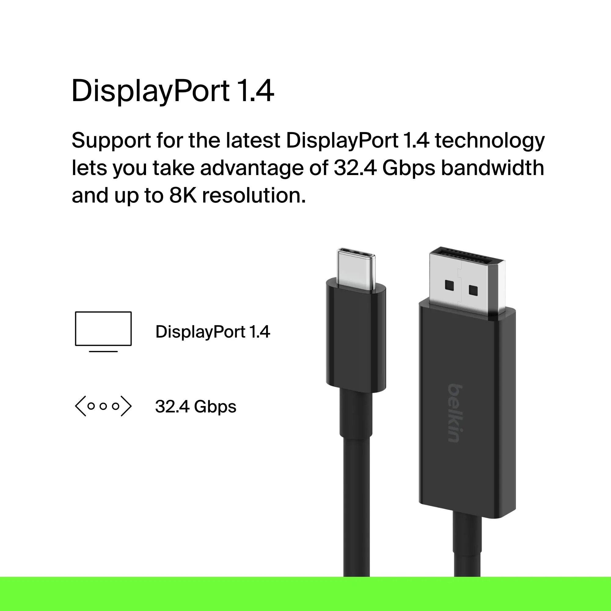 This USB-C to DisplayPort 1.4 cable provides a seamless connection from your USB-C devices to DisplayPort displays.