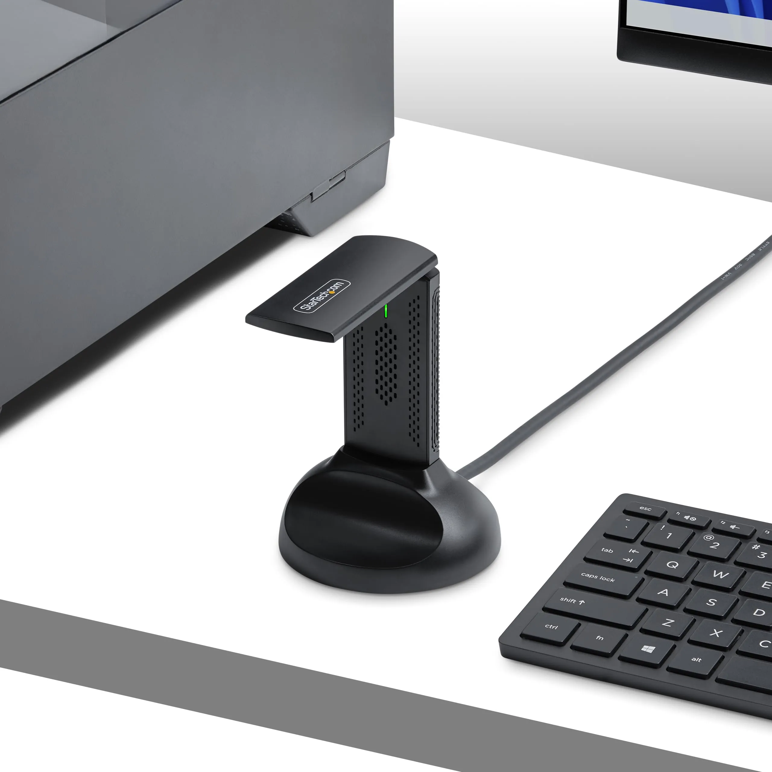 Add Wi-Fi 6E to a desktop/laptop PC w/this USB network adapter enabling high-speed wireless connectivity; Dongle requires Windows 11 and WiFi 6E Router for 6GHz (802.11ax) support - Compatible w/802.11 b/g/n/ac/ax in the 2.4/5/6GHz bands at 574/2402/2402Mbps respectively - Supports WPA3 for enhanced password protection - Includes magnetic cradle w/3.8ft cable for optimal placement - Foldable antenna aids to focus signal improving quality and range - NOTE: Windows 10 does not support 6GHz