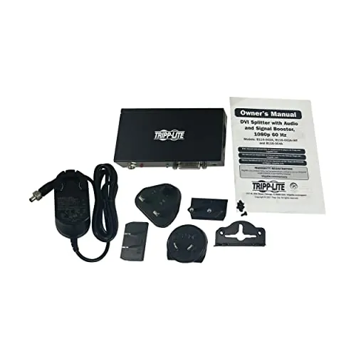 Experience high-definition video output with the 2-Port DVI Splitter with Audio. This versatile splitter allows you to connect two displays using DVI-D while maintaining a crystal-clear 1080p resolution at 60Hz. Perfect for professional and home setups alike, it comes equipped with TAA-compliant international plug adapters for added convenience.