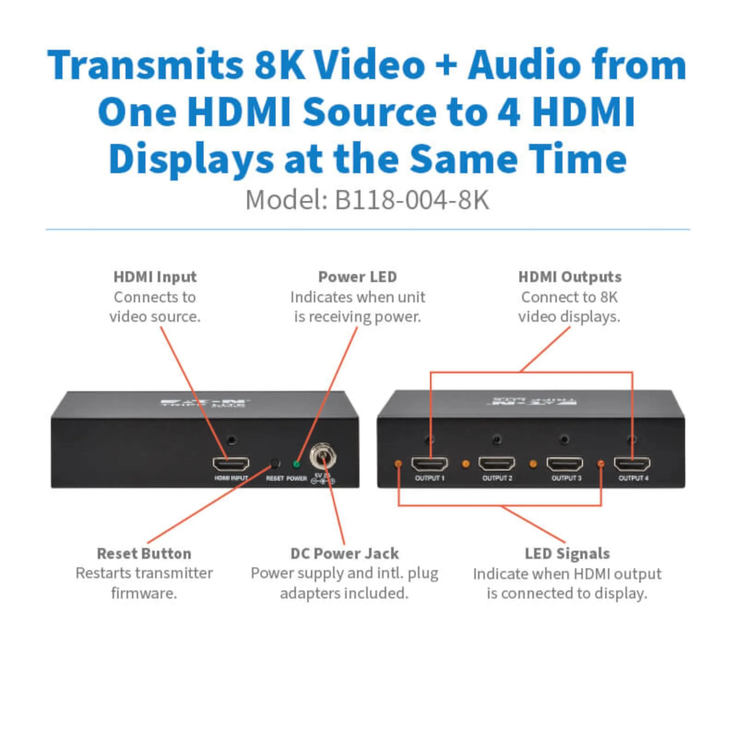 TRIPP LITE SERIES 4-PORT HDMI SPLITTER 8K60HZ HDR10+ MULTI-RESOLUTION SUPPORT TA