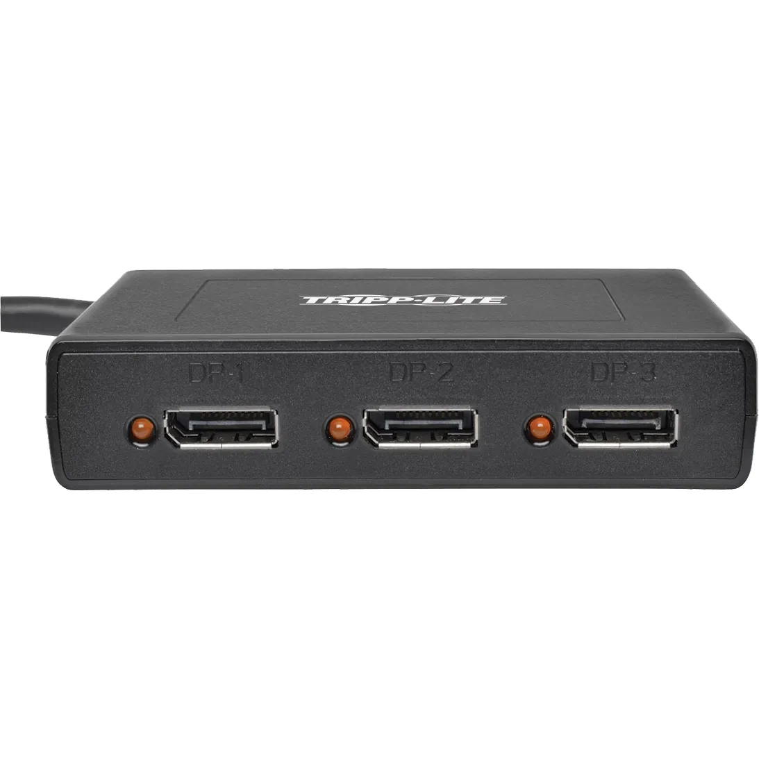 General InformationThe B156-003-V2 3-Port DisplayPort 1.2 MST Hub connects up to three DisplayPort monitors to the DisplayPort output on your computer. Ideal for digital signage in schools, churches, conference rooms, trade shows, hotels and retail outlets, this hub allows you to display the same image on all three monitors, extend the desktop across them, or combine all three into one large monitor in video wall mode.The B156-003-V2 is compliant with DisplayPort 1.2 and backward compatible with versions 1.1 and 1.1a with the feature set being limited to that of your equipment. It supports Ultra High Definition (UHD) video resolutions up to 3840 x 2160 (4K x 2K) at 24/30 Hz with the number of 4K monitors limited according to your graphics card's specifications. In video wall mode, this hub supports expanded resolutions, such as 5760 x 1080 in a horizontal 1 x 3 monitor configuration or 1920 x 3240 in a vertical 3 x 1 configuration.This MST hub also supports HDCP, EDID, DDC and 48-bit Deep Color (16 bits per channel), as well as DTS-HD, Dolby TrueHD and 7.1-channel surround sound audio. It works with all operating systems. Plug-and-play convenience means no software or drivers are needed. A built-in six-inch cable connects directly to a DisplayPort source. LEDs indicate when the monitors are receiving a signal. The B156-003-V2 complies with the Federal Trade Agreements Act (TAA) for GSA Schedule purchases. Computer with DisplayPort 1.2-compatible graphics card (e.g. AMD Radeon with AMD Eyefinity) required for video wall mode. Backward compatible with most DisplayPort 1.1a equipment running current graphics drivers with feature set limited to that of your equipment. Compatibility with older graphics cards not guaranteed. MST-compliant graphics cards are limited to a bandwidth of 21.6 Gbps amongst all monitors with higher resolution monitors using up more bandwidth. 1080p monitors will use up approximately 22% of bandwidth, whereas 4K monitors will use 40% or more. As each monitor will be different, it is necessary to verify the percentage of bandwidth being used by each monitor in the display settings interface of your graphics card. If the total percentage of bandwidth taken up by all the connected monitors exceeds 100%, an image will not display on one or more of them. Computer with DisplayPort 1.2-compatible graphics card (e.g. AMD Radeon with AMD Eyefinity) required for video wall mode Backward compatible with most DisplayPort 1.1a equipment running current graphics drivers with feature set limited to that of your equipment. Compatibility with older graphics cards not guaranteed. Mac OS X does not support MST for NVIDIA and Intel Graphics Processor Units, limiting video display on connected monitors to mirror mode. MST-compliant graphics cards are limited to a bandwidth of 21.6 Gbps amongst all monitors with higher resolution monitors using up more bandwidth. 1080p monitors will use up approximately 22% of bandwidth, whereas 4K monitors will use 40% or more. As each monitor will be different, it is necessary to verify the percentage of bandwidth being used by each monitor in the display settings interface of your graphics card. If the total percentage of bandwidth taken up by all the connected monitors exceeds 100%, an image will not display on one or more of them. Monitor(s) with DisplayPort input VideoMaximum Video Resolution: 3840 2160Interfaces/PortsDisplayPort: YesNumber of DisplayPort Inputs: 1Number of DisplayPort Outputs: 3Power DescriptionInput Voltage: 5 V DCPhysical CharacteristicsHeight: 0.9"Width: 4.3"Depth: 3"Weight (Approximate): 4 oz