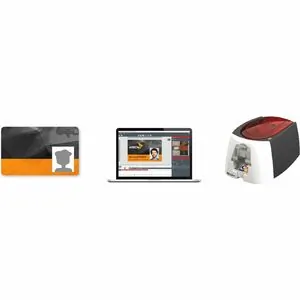 Evolis Badgy 200 Plastic ID Card Solution includes Printer 1 color ribbon 100 thick cards 30 mil 076 mm Software Cables Print borderless plastic badges 40sec CLR 11sec BLK Badge Studio software wdatabase PCMac