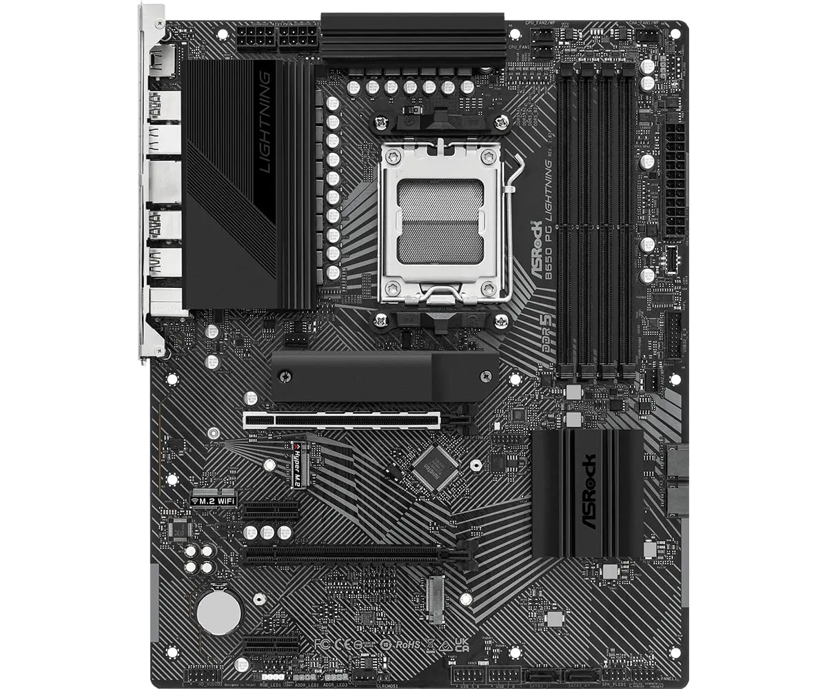 The ASRock B650 PG Lightning is an advanced ATX motherboard designed specifically for AMD AM5 processors. Featuring support for up to 128GB of DDR5 memory, this motherboard provides high-performance capabilities ideal for gamers and content creators alike.