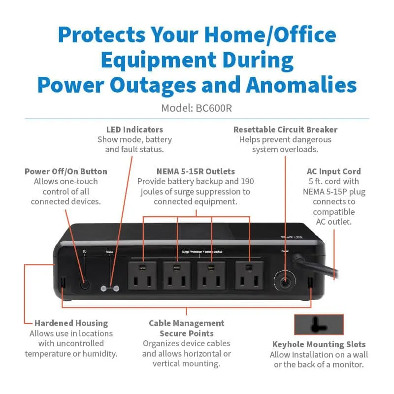 600VA 300W 120V Standby UPS 4 NEMA 5-15R