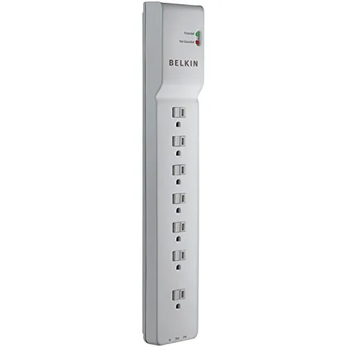 Home Series Surgemaster Surge Protector with seven outlets is designed for entry-level computers, peripherals, phone, fax, modems and more. Device filters EMI/RFI noise up to 43 dB reduction. Surge protector offers telephone line (RJ11) protection, right-angle plug, and 2320 Joules of protection. 12' extended cord delivers optimal, safe AC power through a 14-gauge heavy-duty cord.