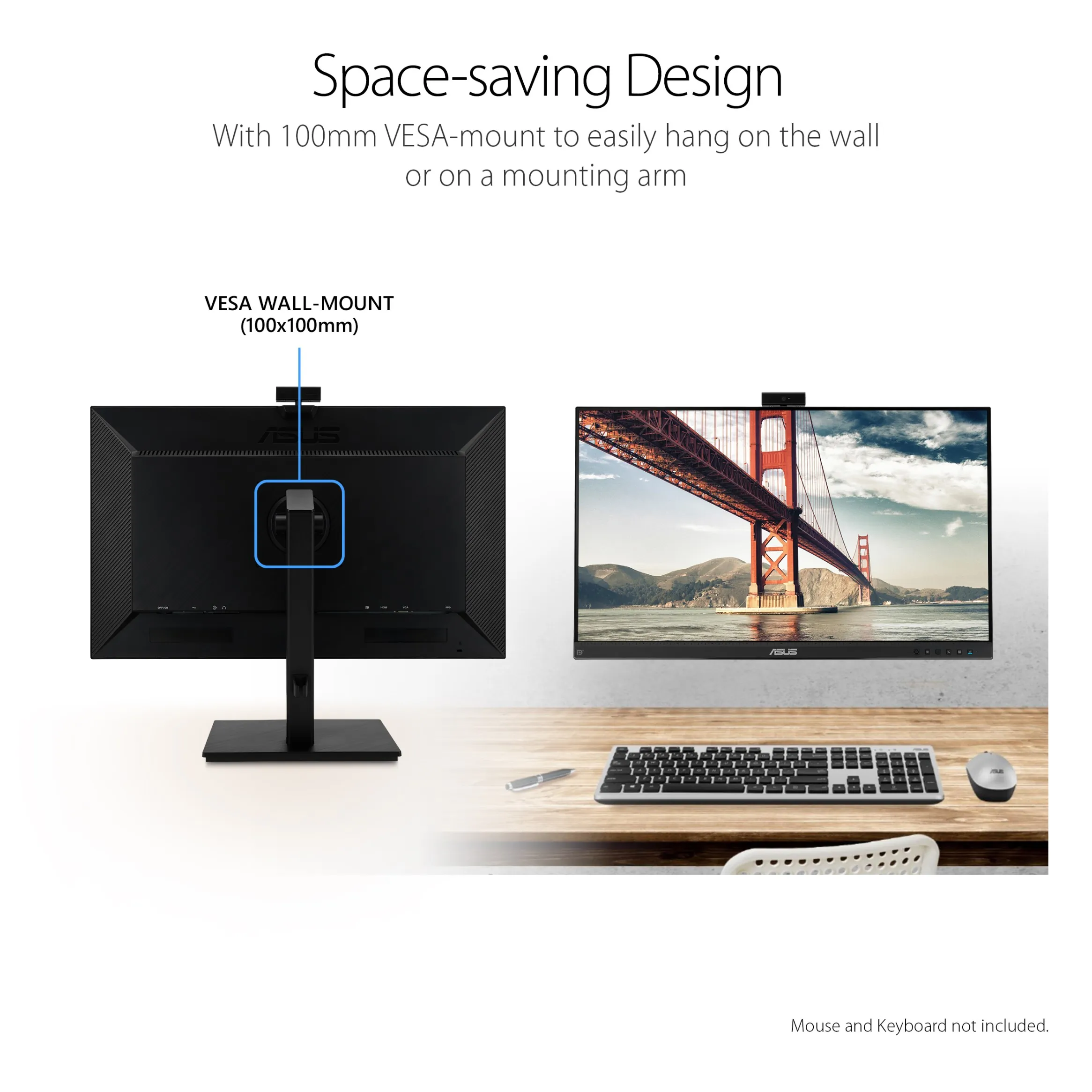 ASUS BE279QSK Video Conferencing Monitor - 27 inch, Full HD, IPS, Frameless, Full HD Webcam, Mic Array, Stereo Speakers, Height Adjustable, Ergonomic Design, HDMI, Eye Care, Low Blue Light, Flicker Free, Wall Mountable.