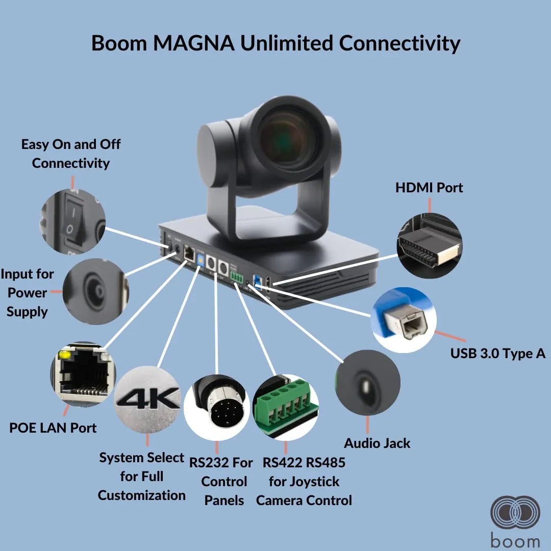 -Ultra HD 4K @ 60fps-82r field of view-4K glass lens-PTZ with 12x optical zoom-USB 3.0, HDMI and LAN-High quality Sony CMOS sensor-Remote control with presets for quick PTZ-PTZ Control: UVC, VISCA, Pelco-D/P, Onvif via RS232, RS485, LAN or IR Remote-IP Streaming: H.264, H.265, RTSP, RTMP-3-year warranty