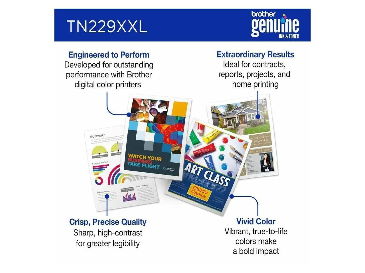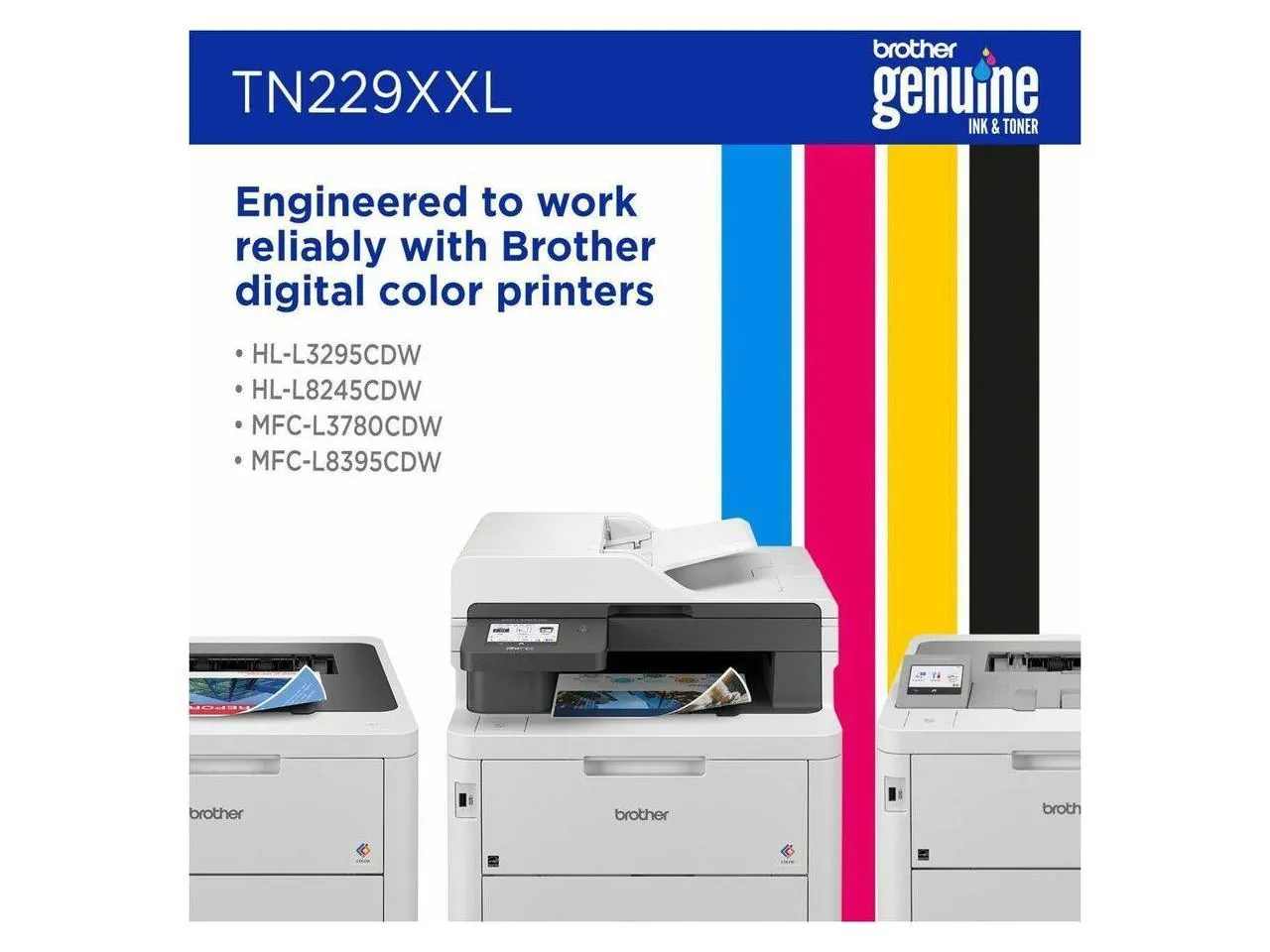 Print confidently in highvolume environments with Brother Genuine TN229XXLM Super High Yield Magenta Toner Cartridge. Providing deep savings per page and the convenience of even fewer cartridge changes than our high yield TN229XL cartridges, it's the only toner brand recommended for Brother multifunction and all in one digital color printers. Produces vibrant, eyecatching color with reassuring compatibility, consistently reliable results, and impressive page yields up to 4000 pages. The trusted choice for printing professional, laserquality business documents that demand attention. Use with Brother multifunction and all in one digital color printers with laser quality: HLL3295CDW, HLL8245CDW, MFCL3780CDW, and MFCL8395CDW