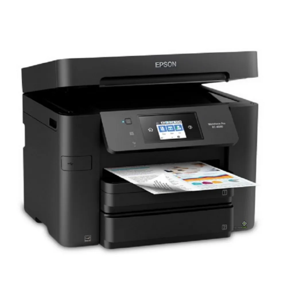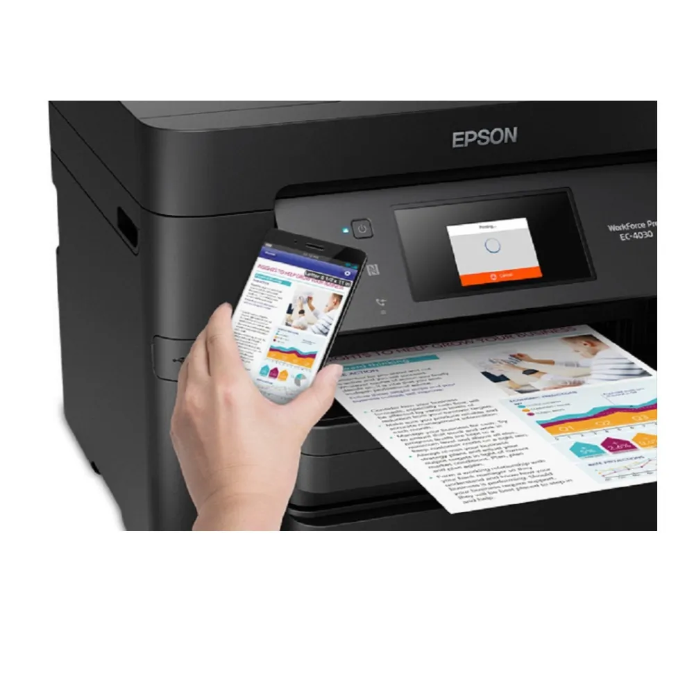 The high-speed, high-volume color MFP for busy workgroups. Get high-performance printing for your busy workgroup with the WorkForce Pro EC-4030 color multifunction printer. Powered by revolutionary PrecisionCore technology, the EC-4030 Business Edition delivers print-shop-quality prints with laser-sharp text. Featuring fast speeds and a 500-sheet paper capacity, it's perfect for high-volume printing - with two trays, you'll replace paper less often. And, it's easy on the budget, offering up to 50 percent lower printing costs vs. color laser. Plus, its 35-page Auto Document Feeder and auto 2-sided printing enhance your productivity. Combining powerful performance with a space-saving design, it offers extraordinary efficiency. 4-in-1 with Wi-Fi: Print / Copy / Scan / FaxInk: 4-color DURABrite Ultra pigment inkISO Print Speed: Black: 20.0 ISO ppm; Color: 20 ISO ppm