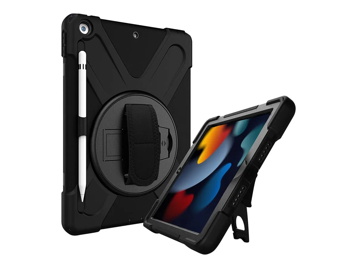 This rugged case for the iPad 10.2 (Gen 7, 8, 9) combines durability and style. Made from high-quality black silicone and polycarbonate, it offers excellent protection against drops and scratches.