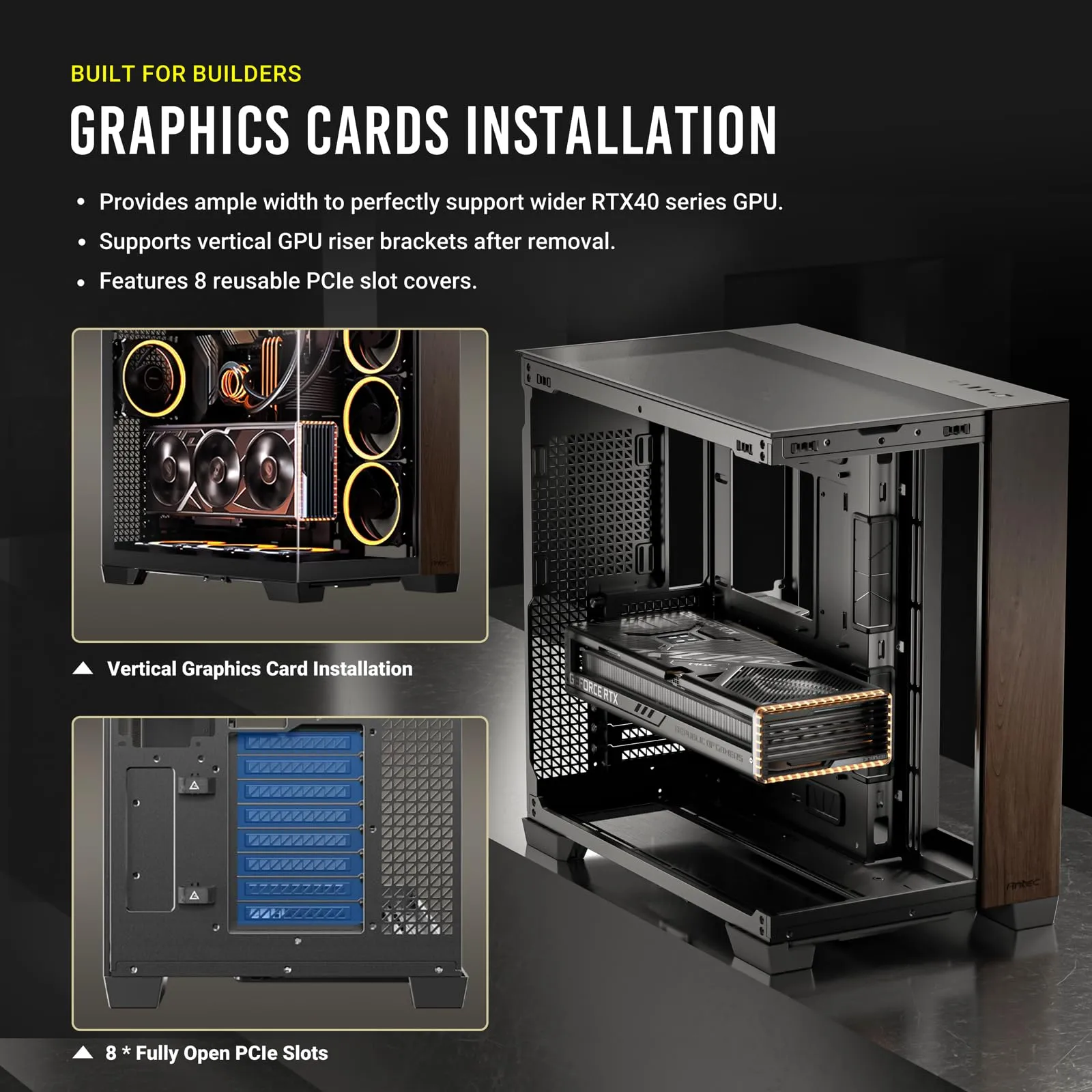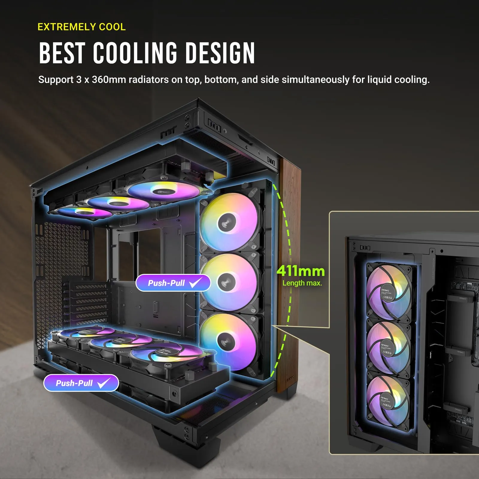 The Antec C8 Wood is an elegant full-tower E-ATX case that combines a stylish wooden front panel with superior functionality. Designed for enthusiasts, it supports a dual-chamber layout, ensuring optimal airflow and an organized interior. Featuring seamless tempered glass panels and support for a 360mm radiator, this case is perfect for your high-performance builds. Compatibility with RTX 40 series GPUs makes it a future-proof choice for gamers and creators alike.