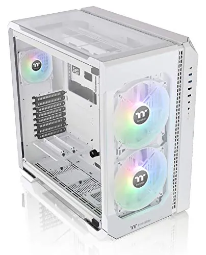 The View 51 TG Snow ARGB Full-Tower case is a stunning choice for PC enthusiasts. It showcases two white 200mm 5V ARGB fans at the front and one white 120mm 5V ARGB fan at the rear, ensuring excellent airflow while being compatible with motherboard synchronization software.