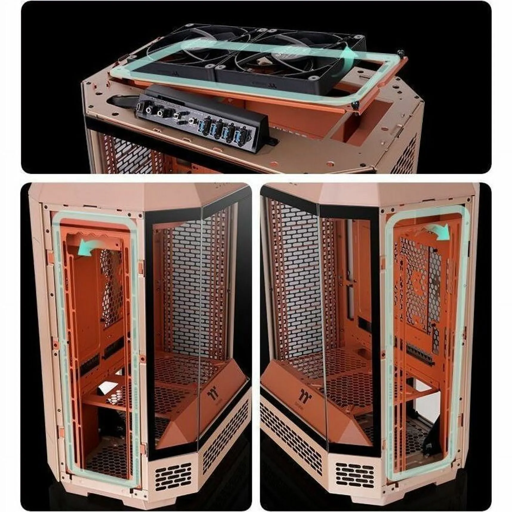The Tower 600 Mid-Tower ATX case showcases an innovative vertical layout and a distinctive octagonal shape, continuing the legacy of the iconic Tower series. It supports hidden-connector motherboards and accommodates up to a 420mm radiator, providing ample space for advanced cooling solutions. With three tempered glass panels featuring tool-free access and rotational PCI-e slots for vertical GPU installation, the Tower 600 expertly merges performance with aesthetic appeal.
