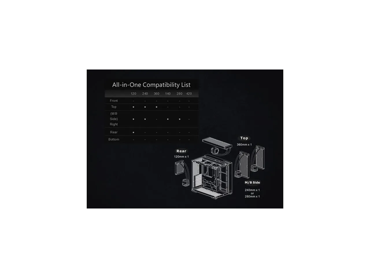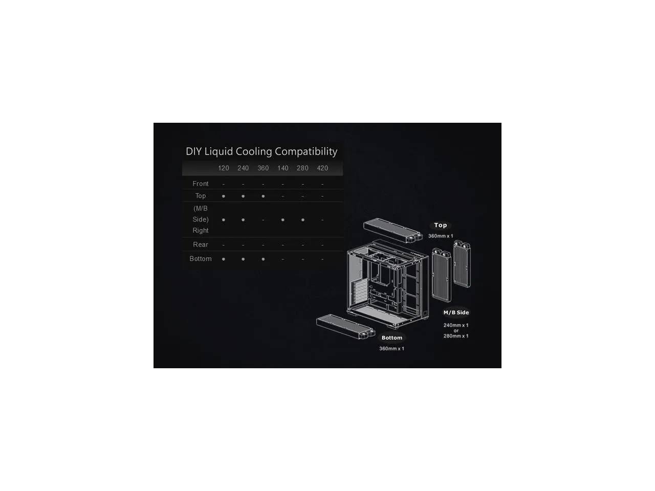 The View 380 TG ARGB isn't just about aesthetics; it offers unparalleled flexibility for cooling solutions. Accommodate up to ten 120mm fans and install up to a 360mm radiator on the top and a 280mm or 240mm radiator on the right side.