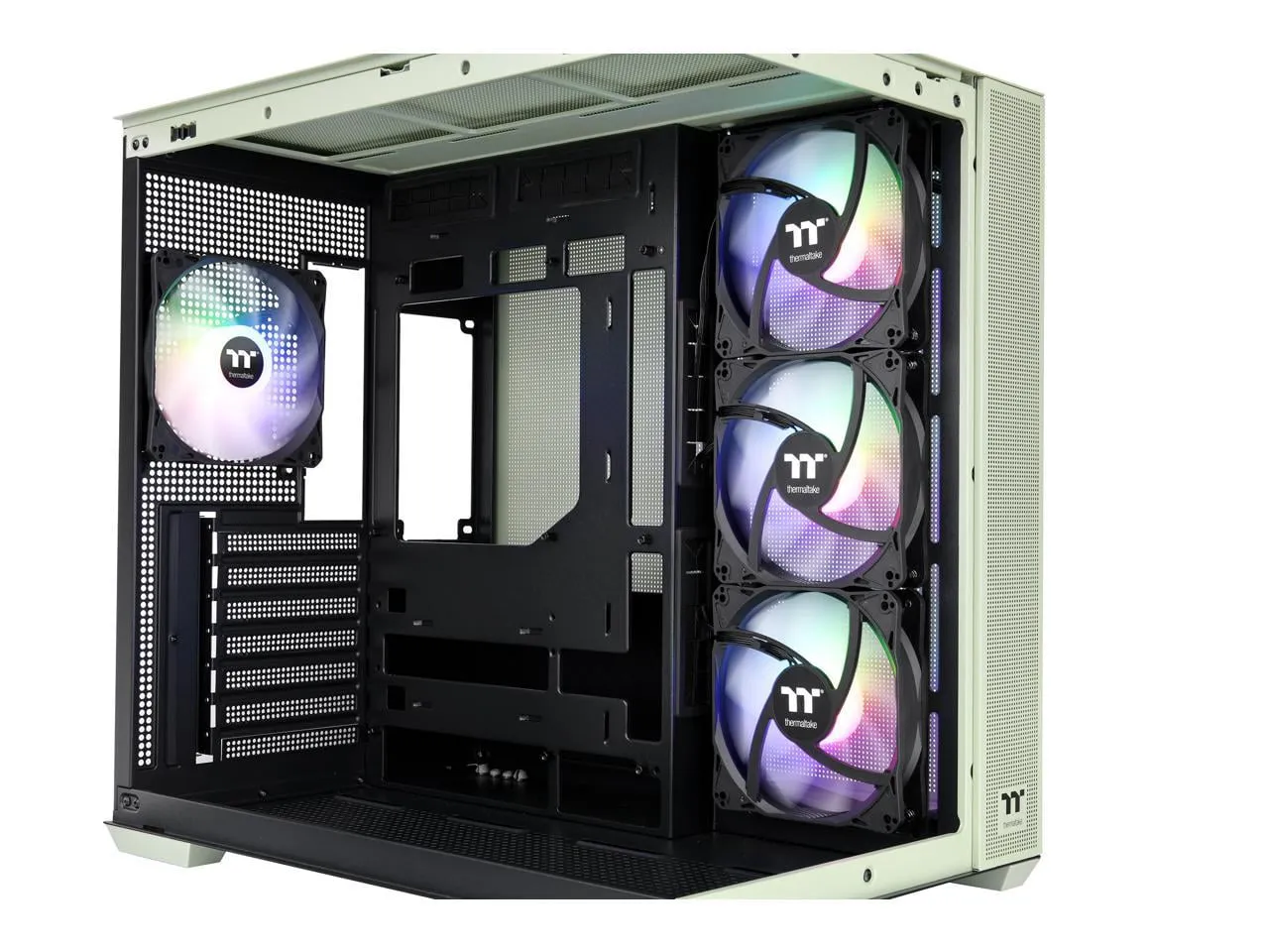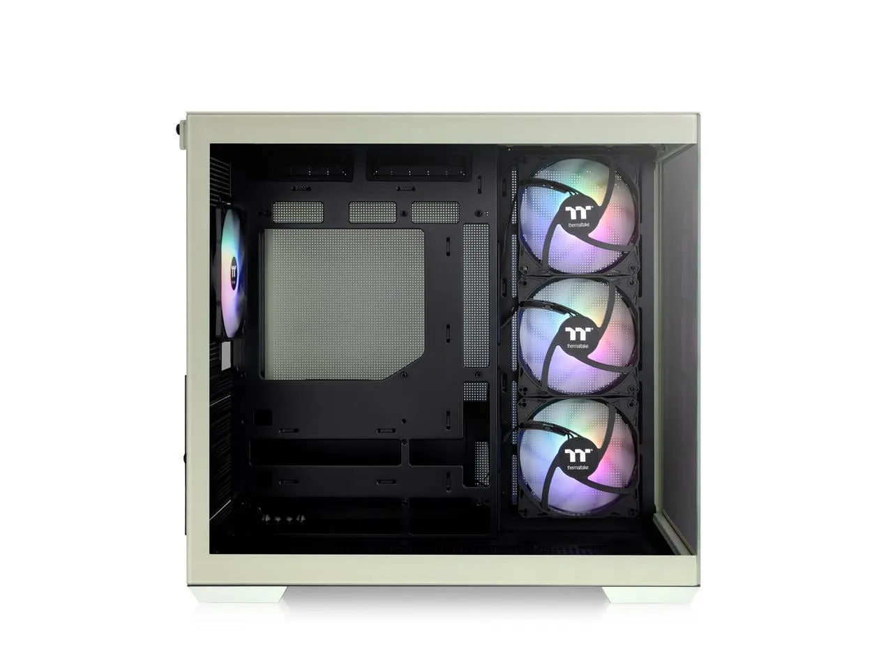 Elevate your gaming rig with the View 380 TG ARGB Mid Tower Case in Matcha Green. This exceptional chassis showcases a dual-chamber design tailored for optimal airflow and cooling performance. Equipped with four stunning Hydraulic Bearing 120mm ARGB Lite Fans, your setup will shine with customizable lighting effects, fully compatible with the RGB software of ASUS, GIGABYTE, MSI, and ASRock.