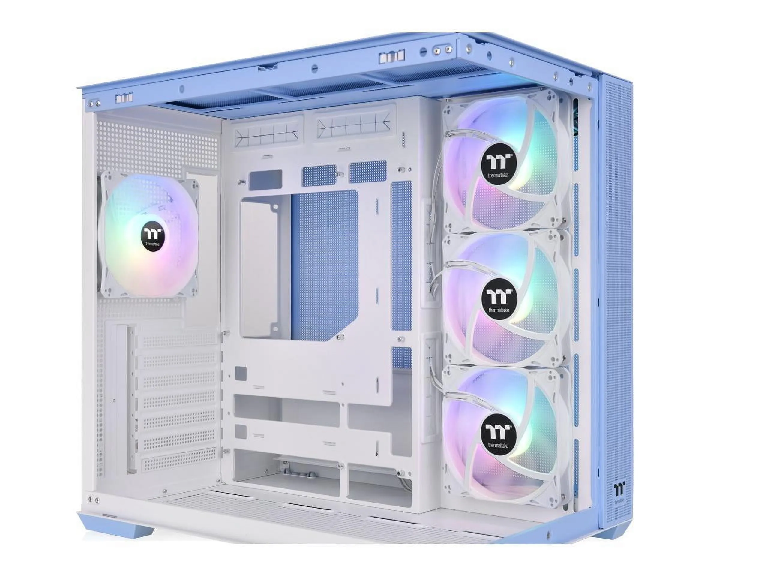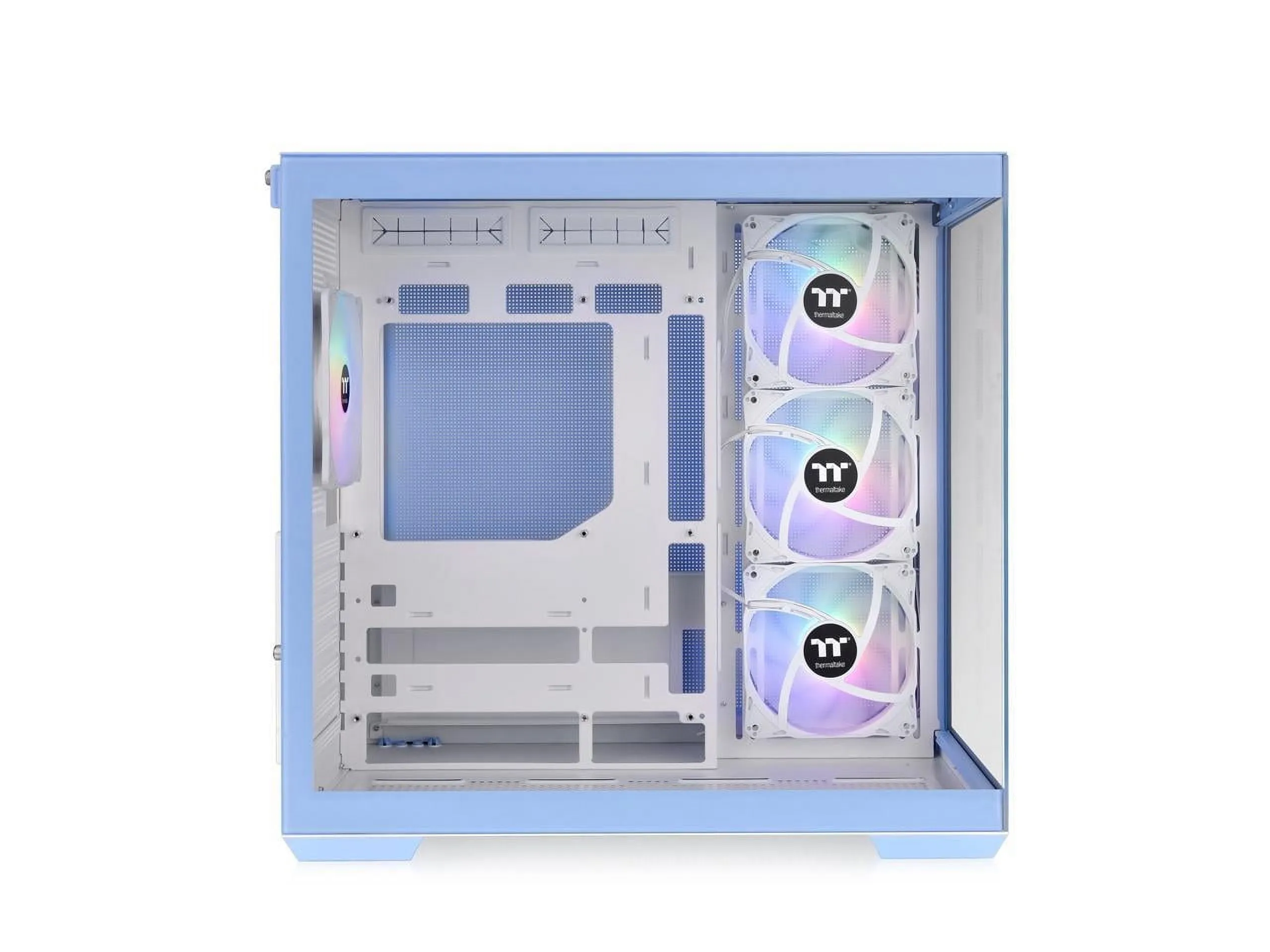 Experience the ultimate in PC customization with the View 380 TG ARGB Mid Tower Chassis - Blue Edition. This innovative dual-chamber ATX case is designed to seamlessly integrate with Hidden-Connector Motherboards from ASUS and MSI. It features four stunning Hydraulic Bearing 120mm ARGB Lite Fans that illuminate your build with vibrant, customizable lighting, fully compatible with software from ASUS, GIGABYTE, MSI, and ASRock.