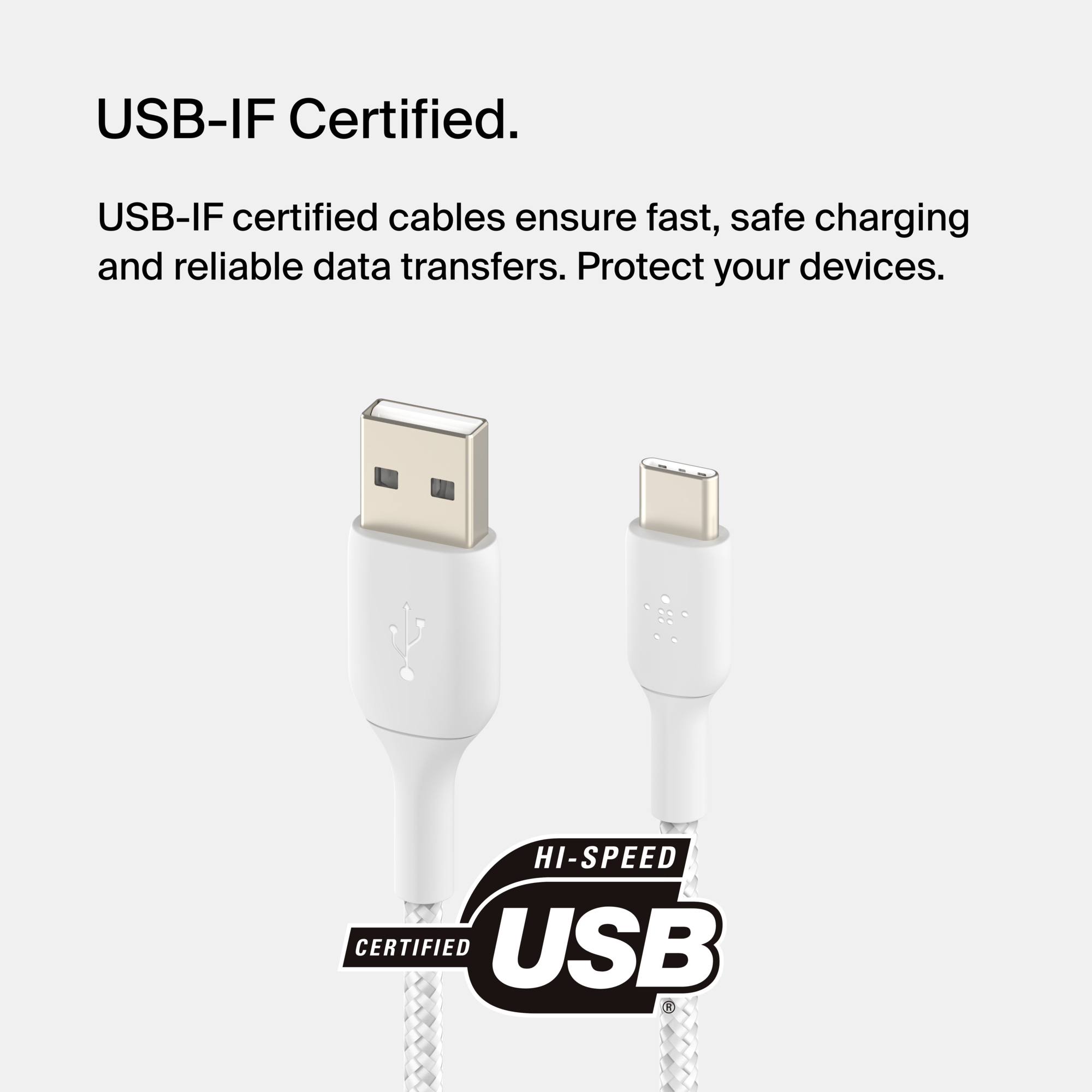 Keep your USB-C devices charged or easily sync music and photos from any USB-A port with durable USB-C to USB-A cables you can use just about anywhere. Made with enhanced braided nylon for added flexibility and strength, tested to withstand 10,000+ bends, and with USB-IF certification, you can count on worry-free performance.