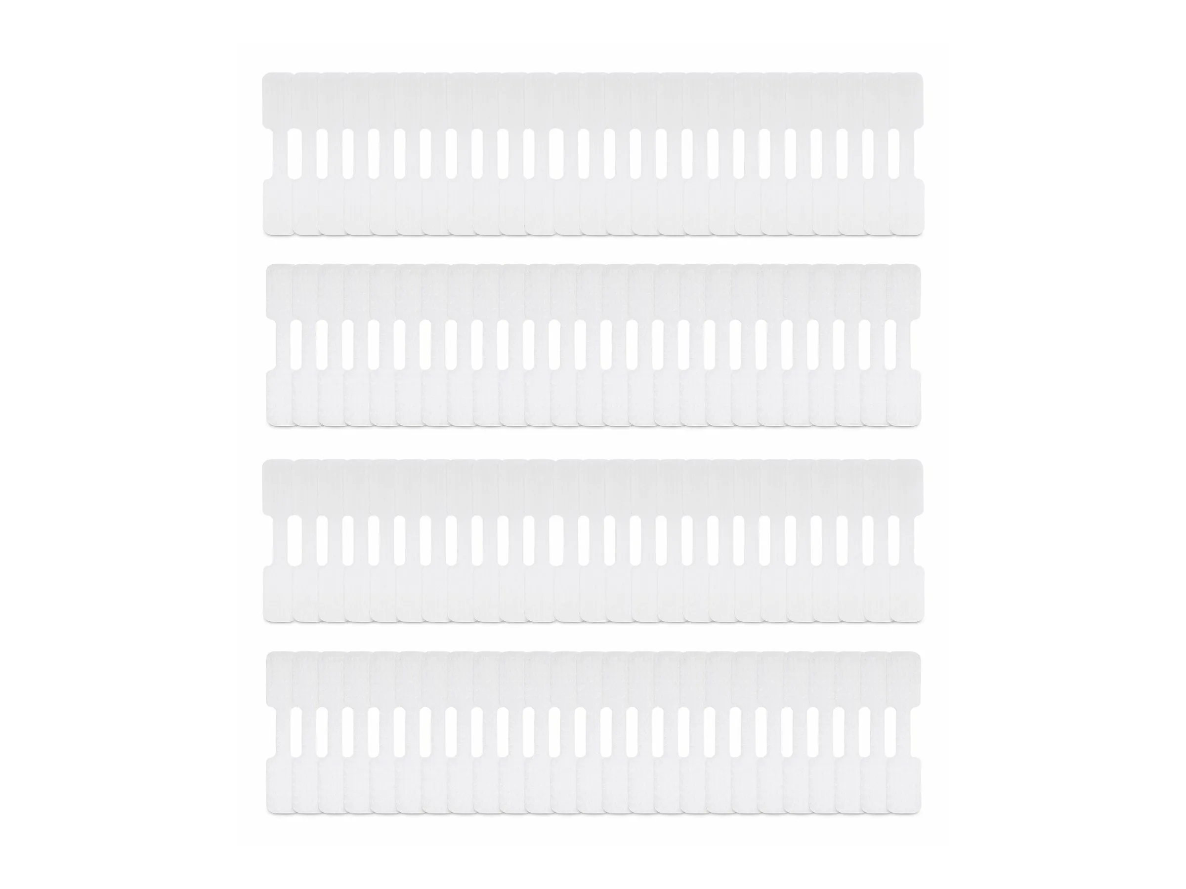 100-pack of hook-to-hook fastener cable tags for convenient cable management; Write-On labels for quick visual identification - Swiftly identify cables for troubleshooting; Hook-to-Hook design is adjustable and will not leave an adhesive residue - Ideal for use with permanent markers; NOTE: Inked labels cannot be erased - Dimensions: 3.5in L x 0.74in H (90mm x 19mm); Colour: White; Qty: 100; Fastening: Hook-to-Hook