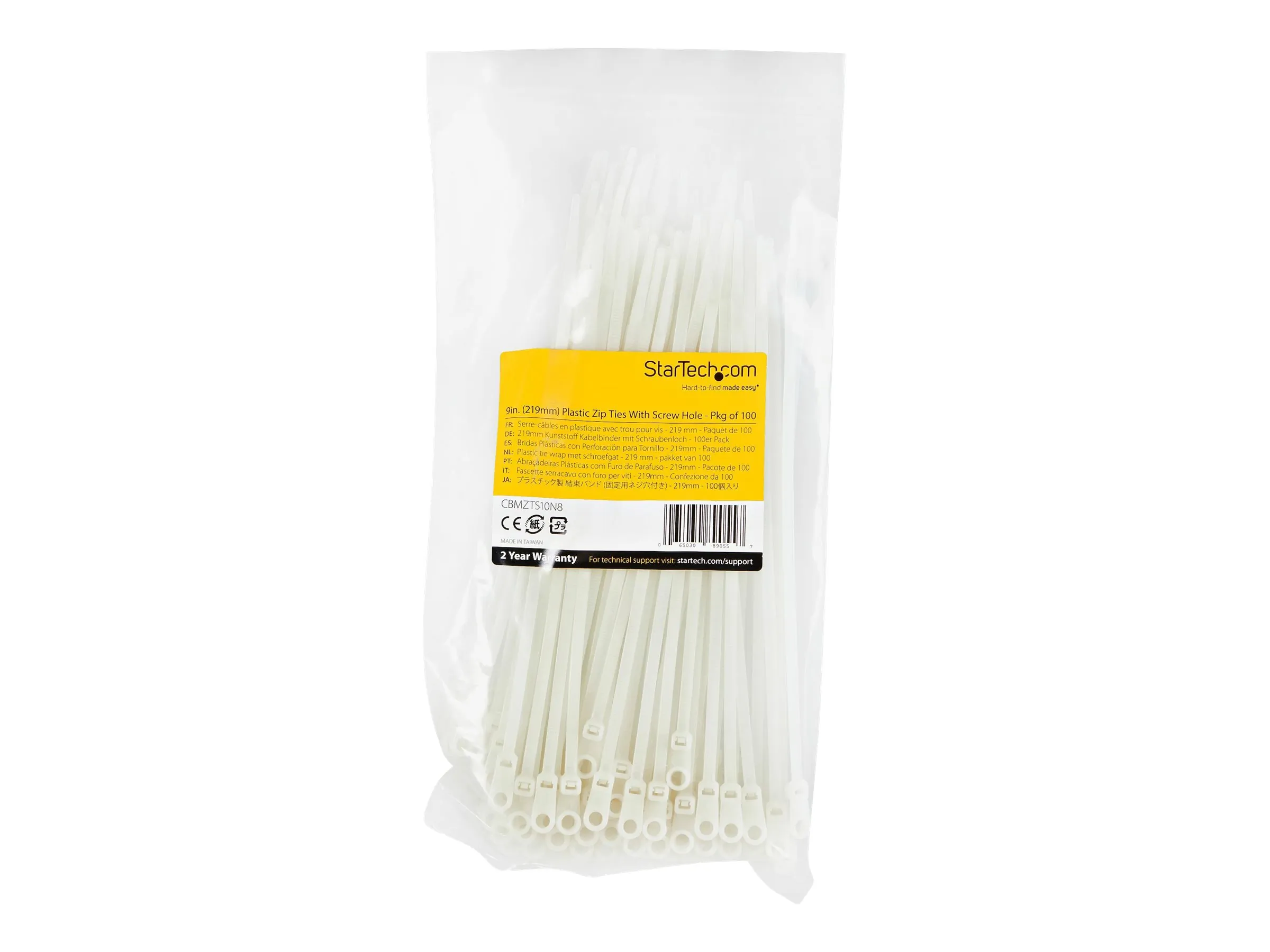 100-pack - 8.62 in. (219 mm) White Cable Ties with Mounting Hole (CBMZTS10N8)