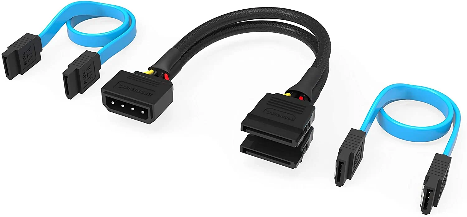 This Molex 4-Pin to Dual SATA Power Adapter Cable allows you to turn a standard Molex power connector into two 15-Pin SATA power connectors. This is perfect for connecting multiple SATA drives to a PSU that has limited SATA power output.