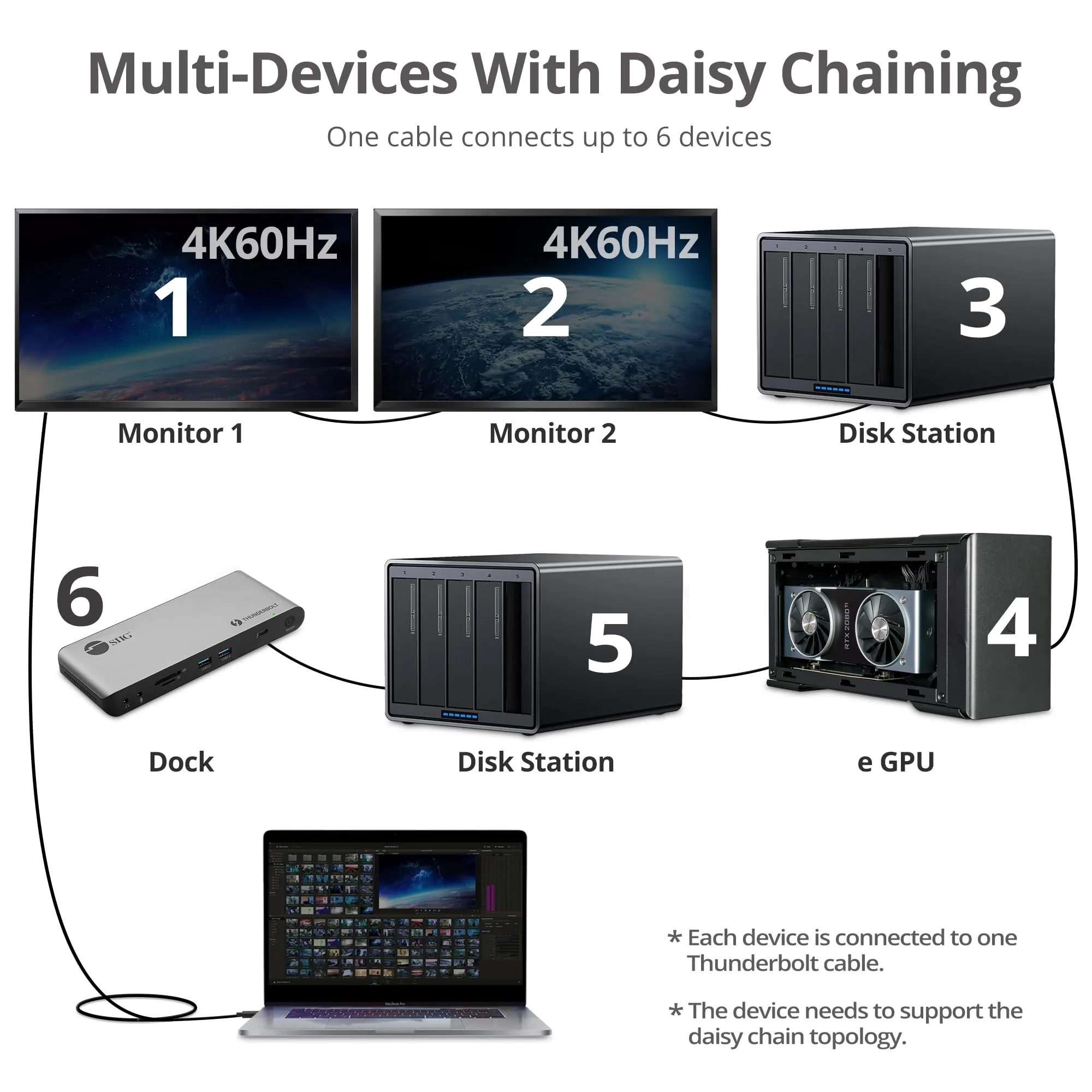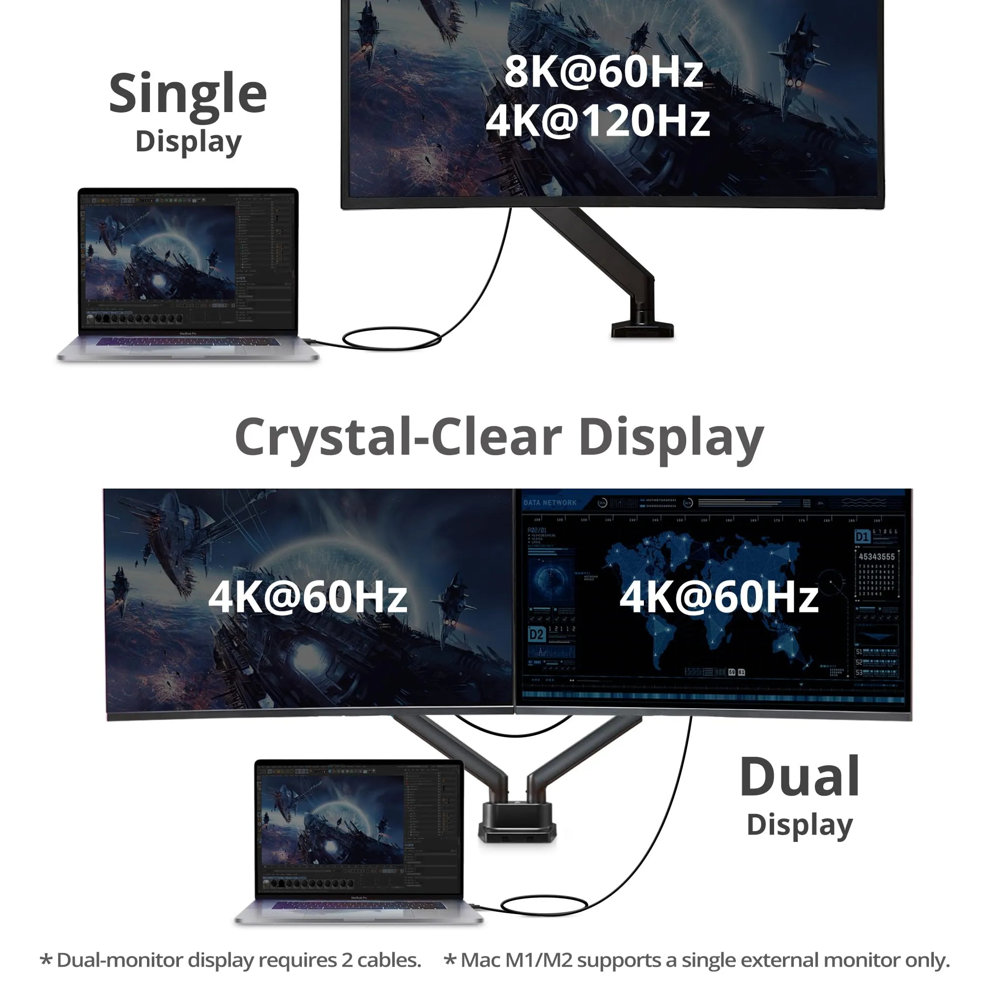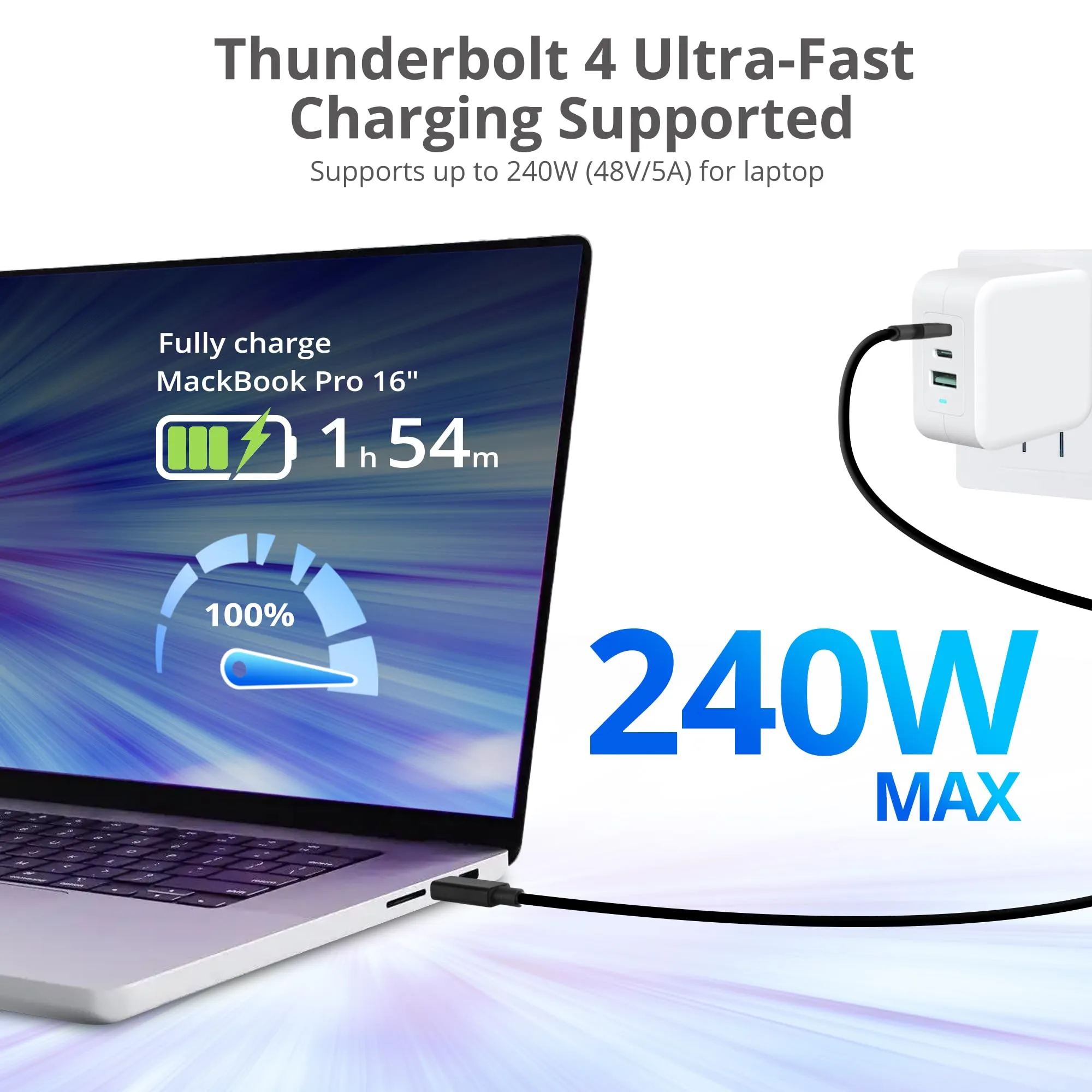 Enjoy crystal-clear visuals with single outputs of 8K at 60Hz, 5K at 60Hz, or 4K at 120Hz, and dual outputs of 4K at 60Hz. Compatible with Thunderbolt 3 and 4, as well as USB 4, 3.2, and 2.0 devices, this cable is suitable for Windows and MacBook Pro systems, iPad Pro, external storage drives, hubs, docking stations, and more.