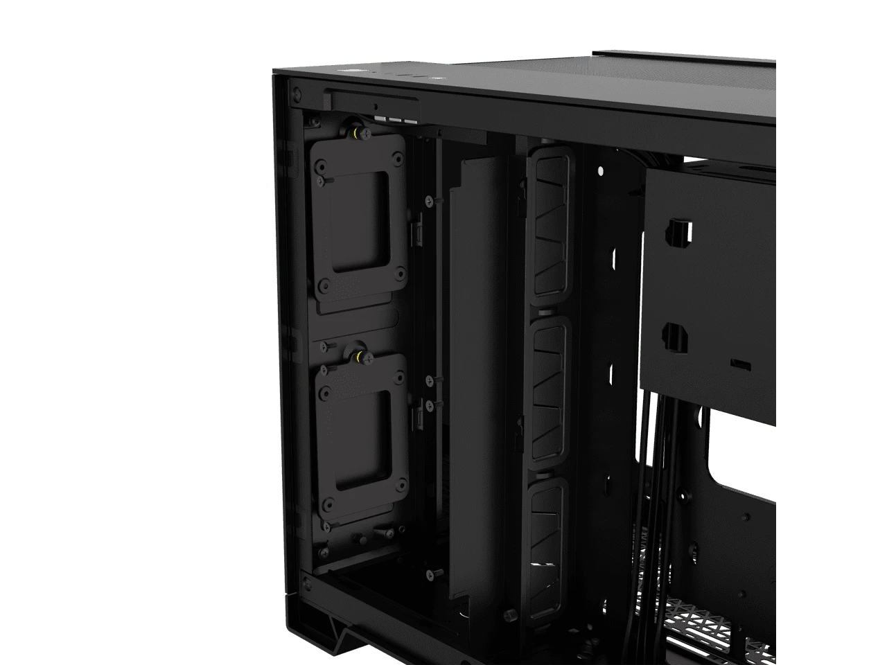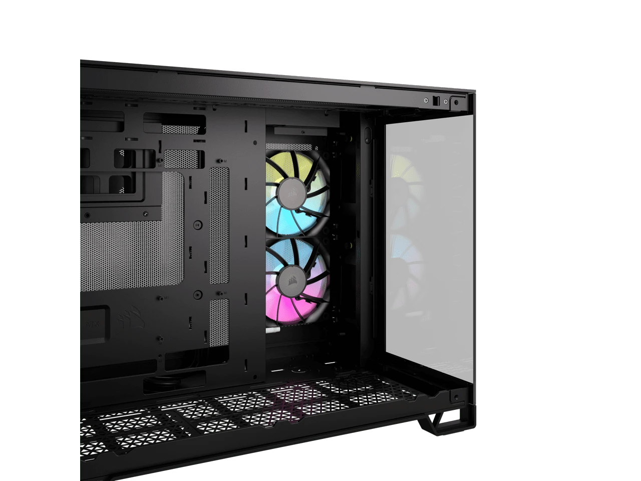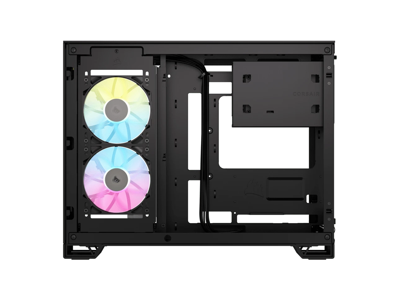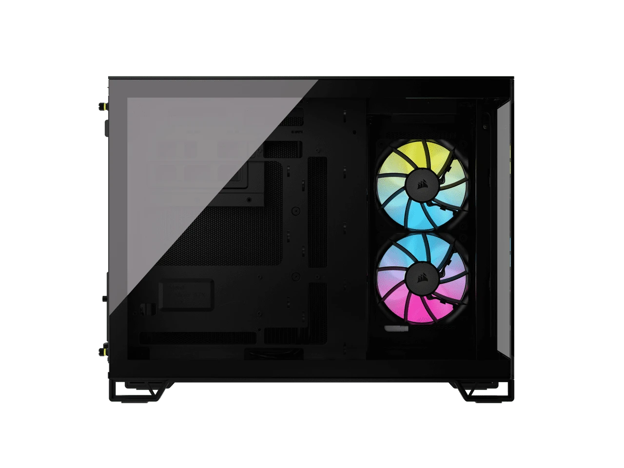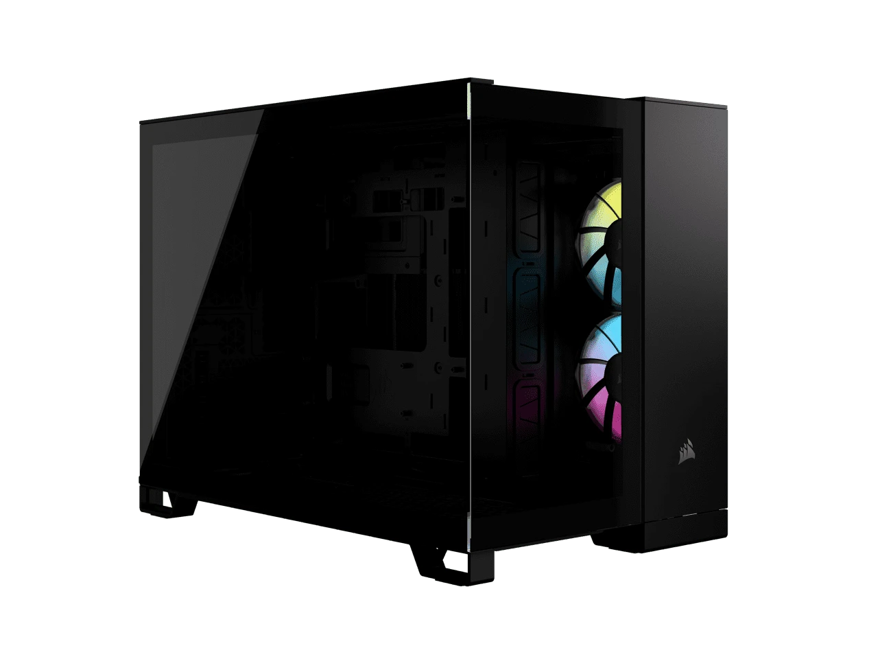 The CORSAIR iCUE LINK 2500X RGB Mid-Tower Dual Chamber PC Case provides a clean and organized view of your SFF PC through dual tempered glass panels, with two pre-installed RX120 RGB fans and an iCUE LINK System Hub to get you started in the revolutionary iCUE LINK ecosystem. Keep the cables out of sight by routing them in the second chamber.