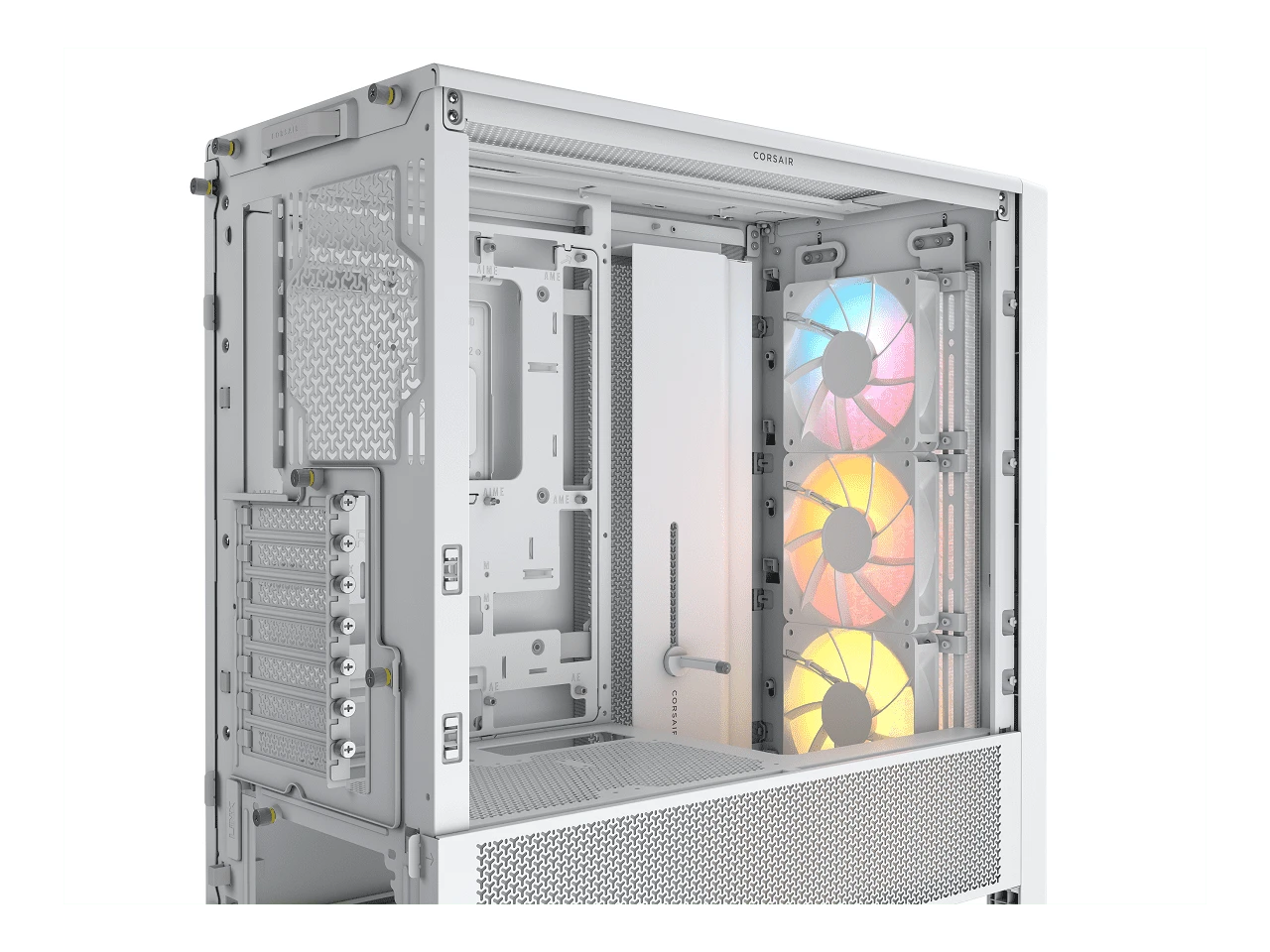 Unleash your creativity with the CORSAIR FRAME 4000D, offering unmatched customization through the FRAME Modular Case System. Equipped with 3x CORSAIR RS ARGB fans plus the InfiniRail Mounting System to support up to a total of 12x 120mm fans and dual 360mm radiators. Compatible with powerful graphics cards and reverse-connection motherboards.