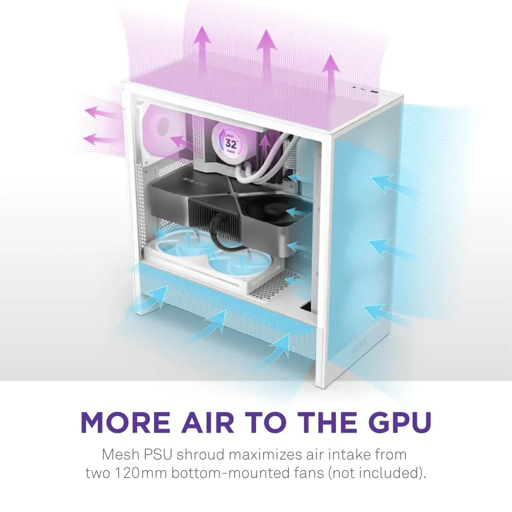The NZXT H5 FLOW RGB Mid Tower Case is designed for optimal airflow and aesthetics. Featuring a stunning ultra-clear tempered glass side panel, this case combines functionality with style. Its spacious interior accommodates high-performance components, ensuring your build looks incredible and stays cool during intense gaming or heavy workloads.