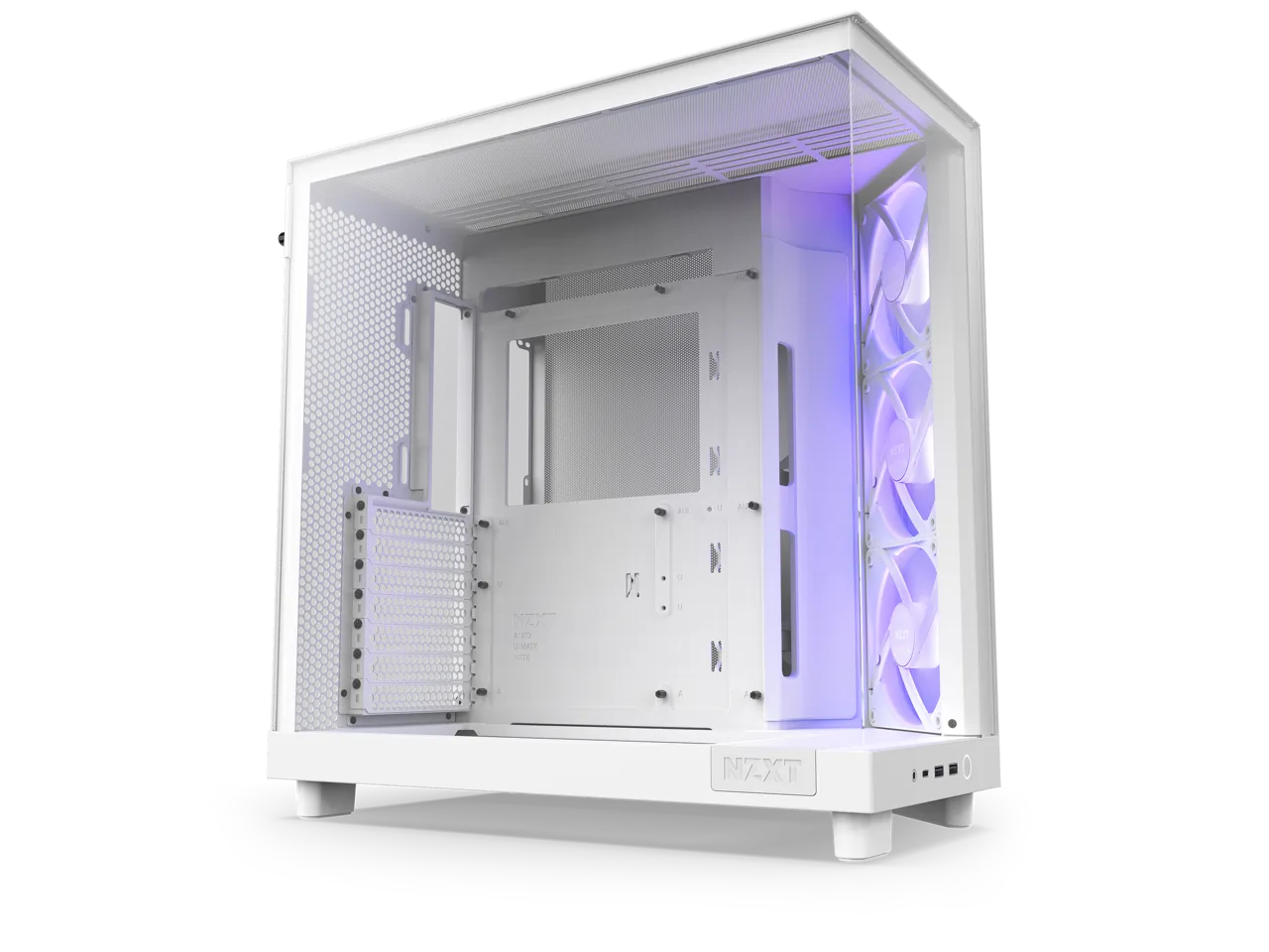 The NZXT H6 FLOW RGB is a mid-tower case designed for optimal performance and stylish aesthetics. With a dual-chamber design, it showcases a sleek white finish and comes equipped with RGB lighting to enhance your build's appearance.
