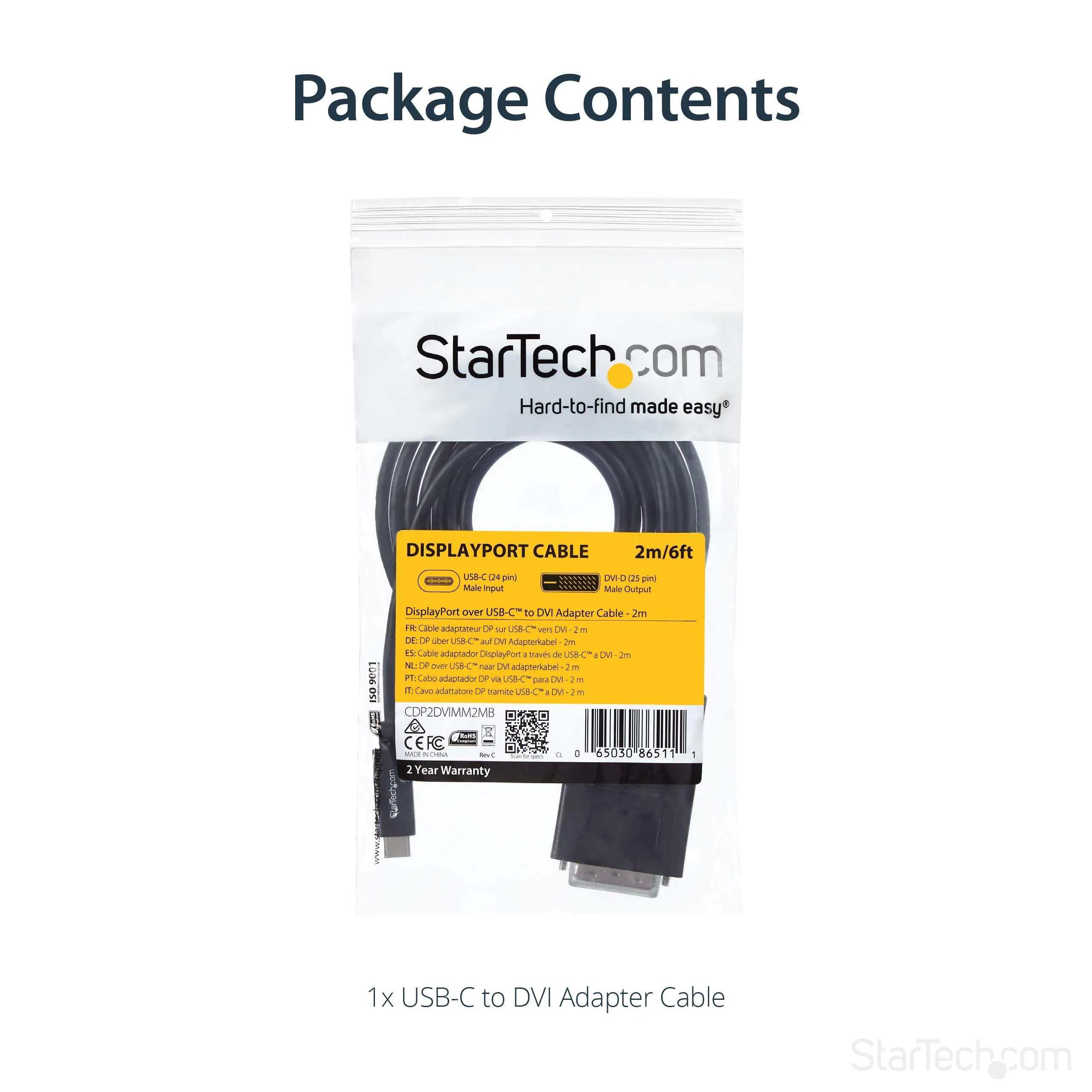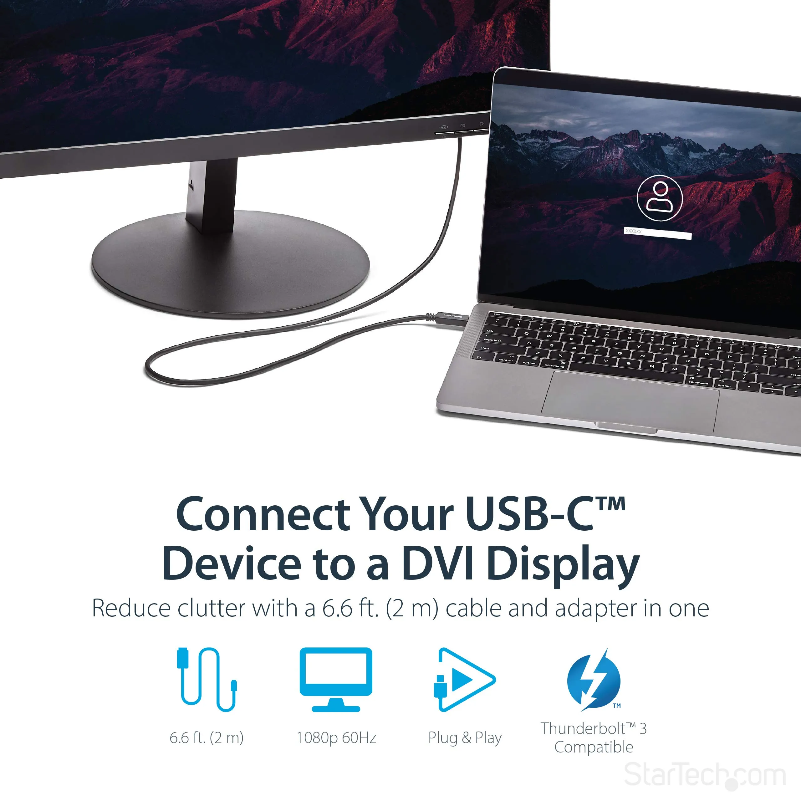 USB-C to DVI Adapter Cable - 2m (6 ft.) - 2560x1600 Eliminate clutter by connecting your USB Type-C computer directly to a DVI display, without additional adapters.
