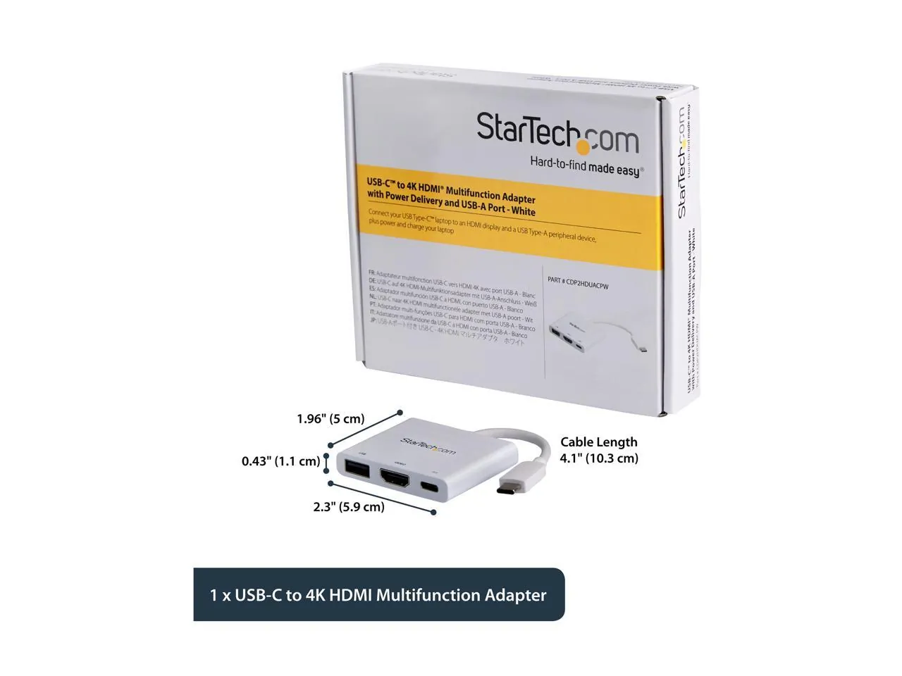 This versatile USB-C multiport adapter allows you to expand your laptop's connectivity through a single USB-C port. Perfect for MacBook and Windows laptops, you can easily connect to a 4K 30Hz monitor via HDMI, ensuring vibrant and sharp video output. Whether you're making presentations in a boardroom or streaming content at home, this adapter delivers reliable performance. It includes a USB-C Power Delivery port, enabling you to power and charge your laptop seamlessly during use, even with just one USB-C port available. Additionally, the handy USB 3.0 port supports backward compatibility for older devices, making data transfer and device charging hassle-free. Its compact design makes it an ideal travel companion for professionals on the go. Note: To ensure full adapter functionality, your laptop's USB-C port must support USB Power Delivery and DP Alt Mode.