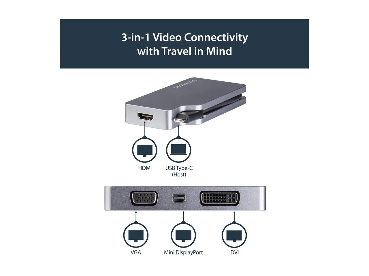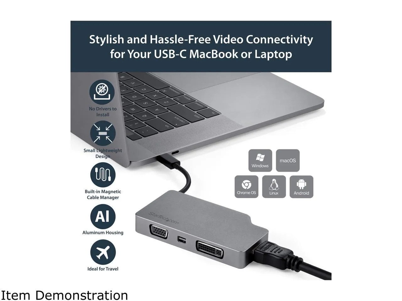 The StarTech USB-C Multiport Video Adapter is the perfect solution for connecting your USB Type-C device to various display outputs. This sleek aluminum adapter is designed for versatility, allowing you to connect to VGA, 4K HDMI, Mini DisplayPort, and DVI displays. Ideal for presentations and media viewing, it supports a wide range of resolutions and provides a stable connection in an elegant Space Gray finish.