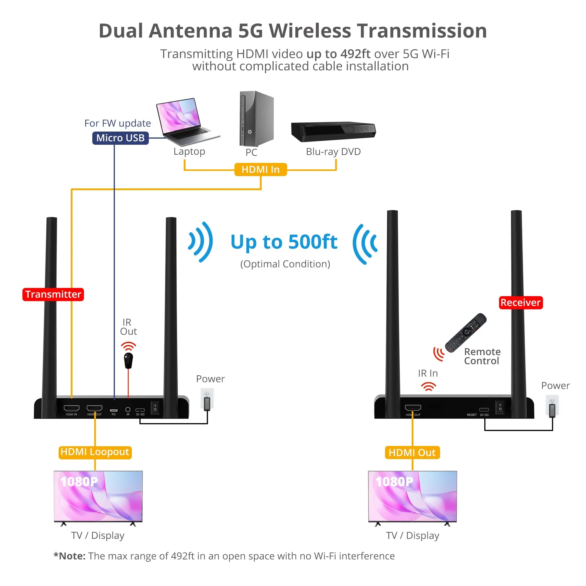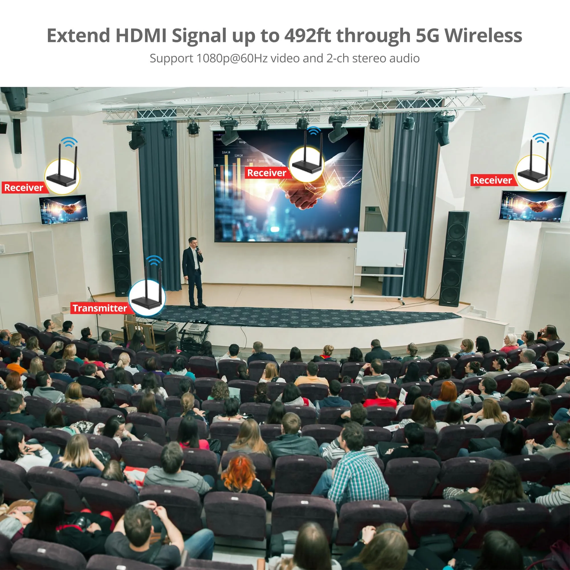 Experience seamless wireless streaming with our Wireless HDMI Video Extender. This device transmits high-definition video and audio without the hassle of cables, providing you with flexibility and freedom to connect devices anywhere in your home or office.