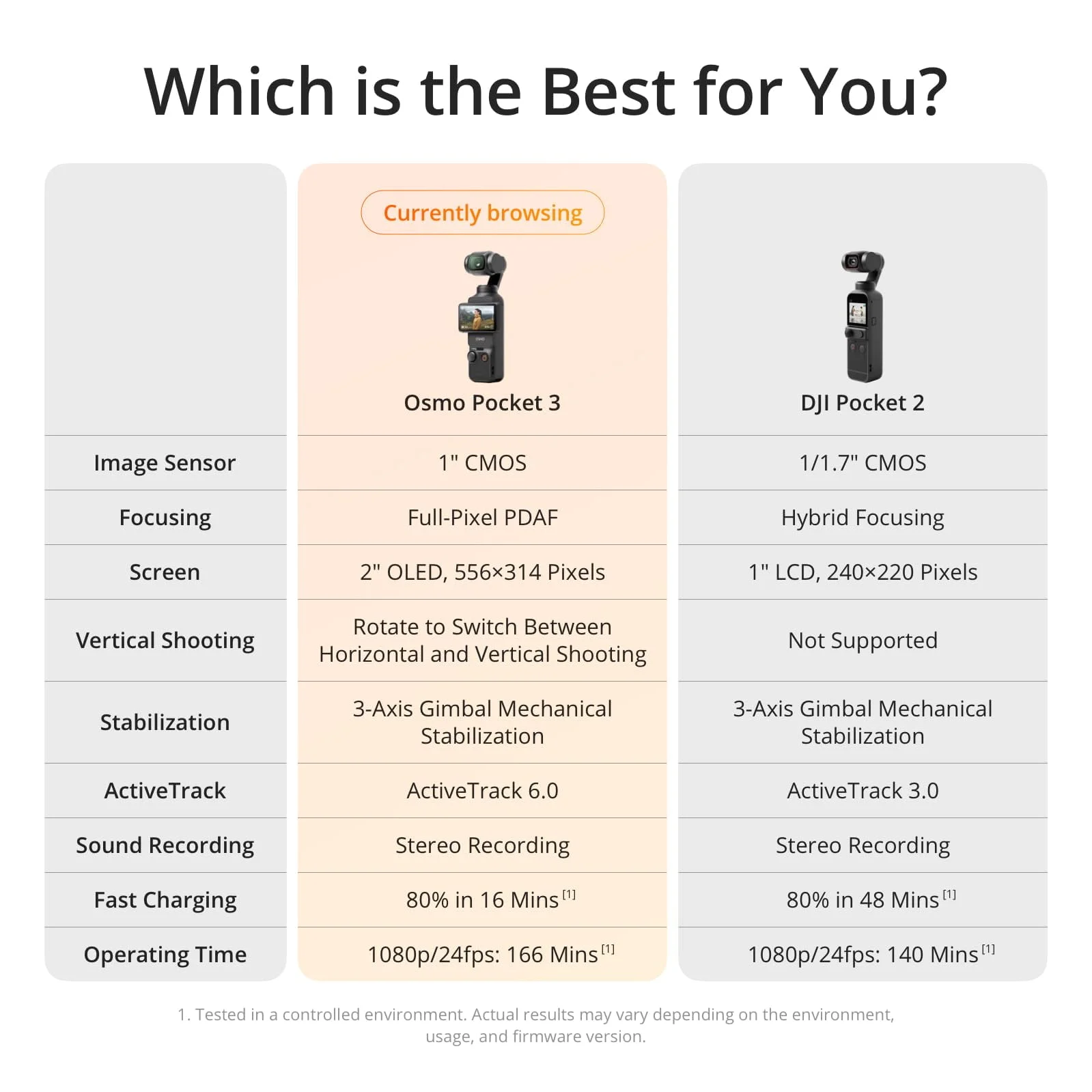 The DJI Osmo Pocket 3 is an ultra-compact camera that combines high-quality imaging with advanced stabilization technology. Designed for content creators on the go, the Osmo Pocket 3 delivers stunning 4K video and 12MP photos, making it ideal for vlogging, travel videos, and capturing everyday moments with professional quality.