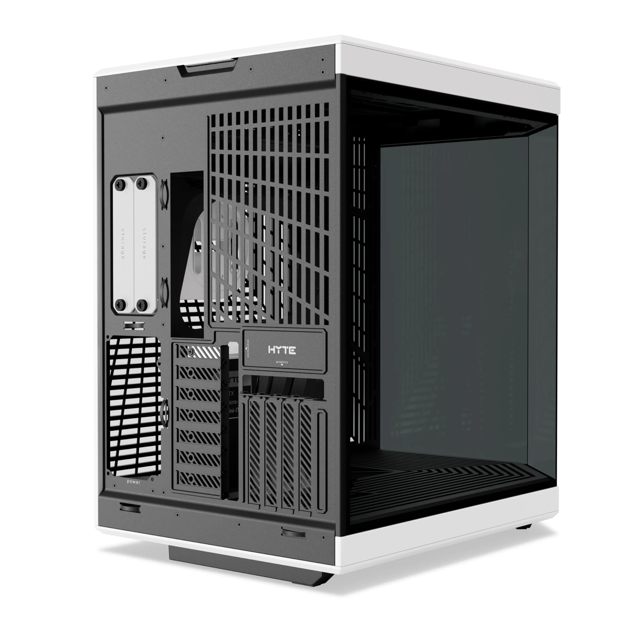 The HYTE Y70 Dual Chamber Mid-Tower ATX Case in white features a stunning design that showcases your components while offering excellent airflow to keep everything cool. This chassis allows for efficient cable management and has ample space for high-performance graphics cards and cooling solutions.